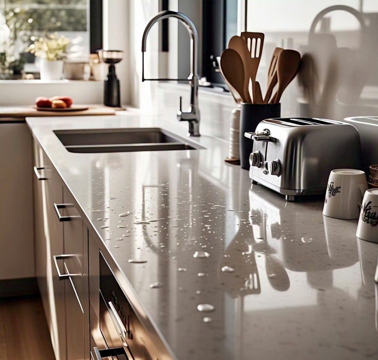 Đá nung kết có cấu tạo chặt chẽ, không chứa lỗ rỗng như đá tự nhiên, giúp sản phẩm đạt độ cứng cao, khả năng chống thấm nước tuyệt đối, chống trầy xước và chịu được các tác động từ môi trường.