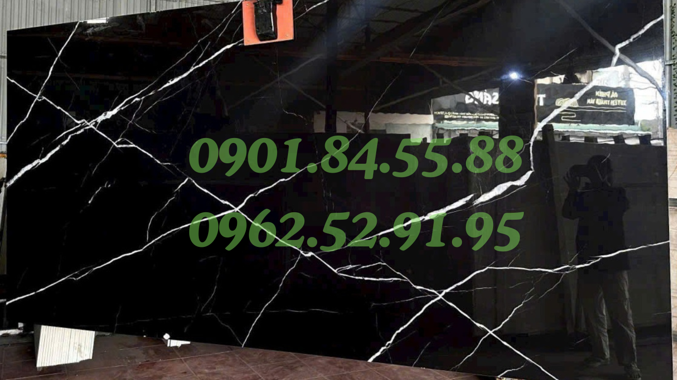 - Vân trắng nổi bật trên nền đen tạo chiều sâu, làm tăng tính nghệ thuật cho không gian.