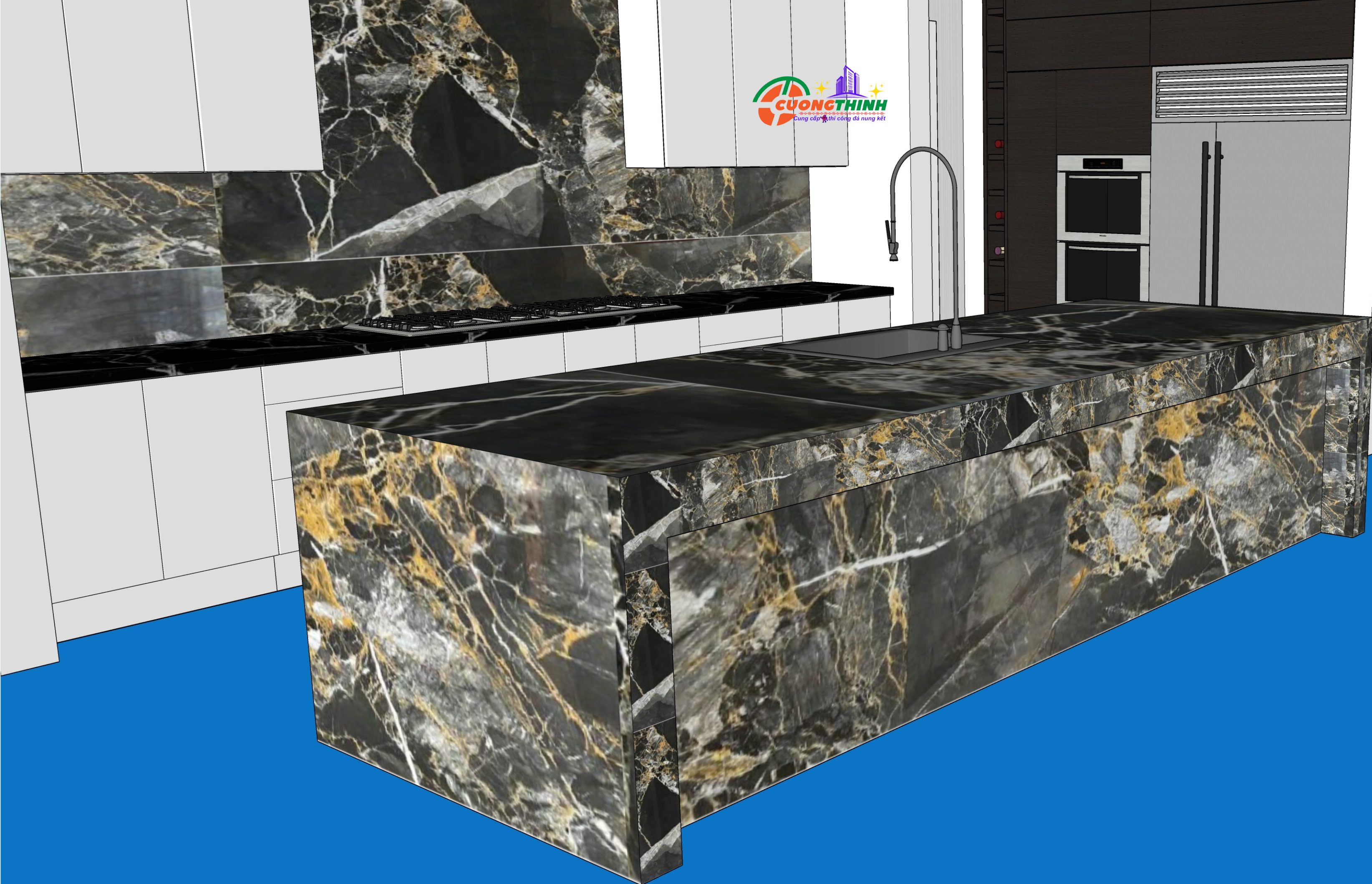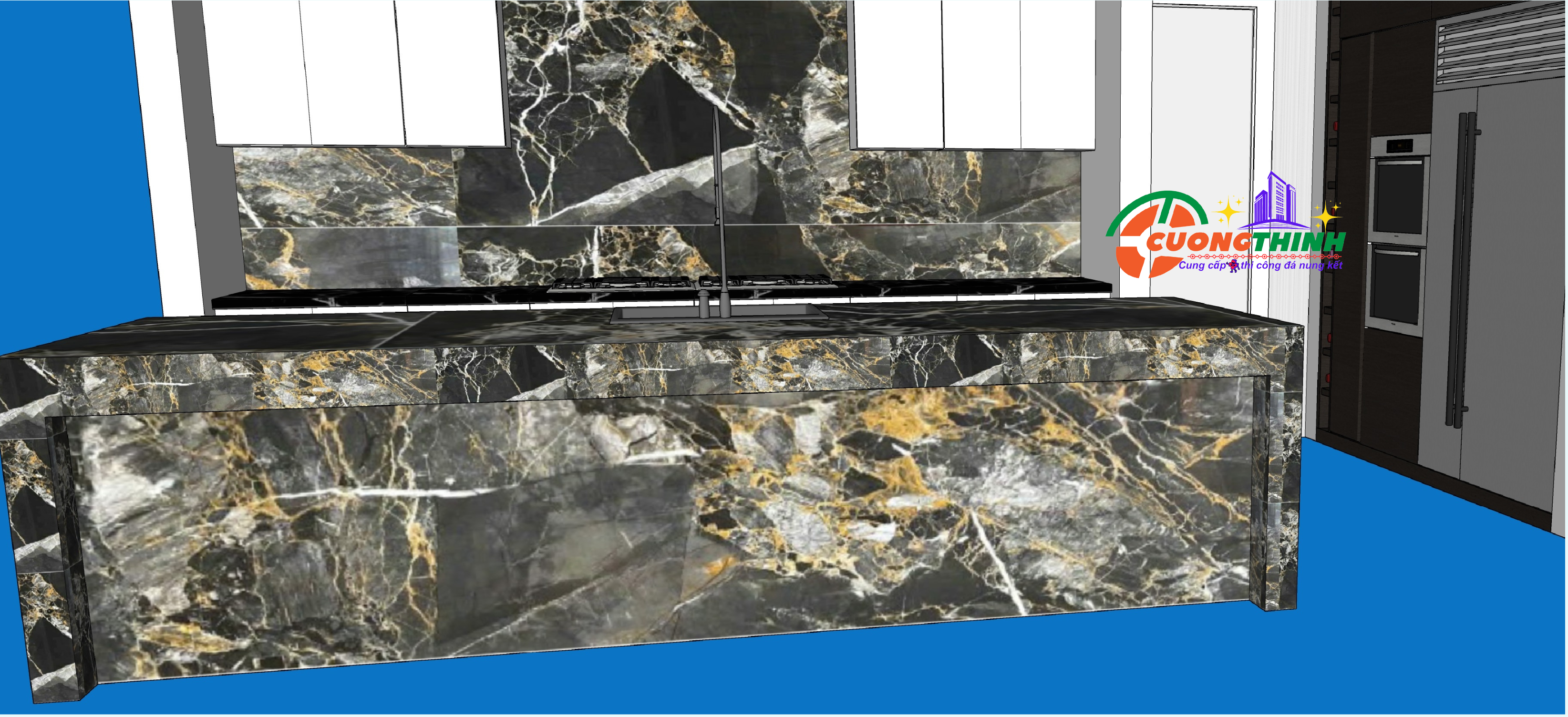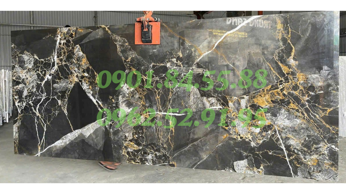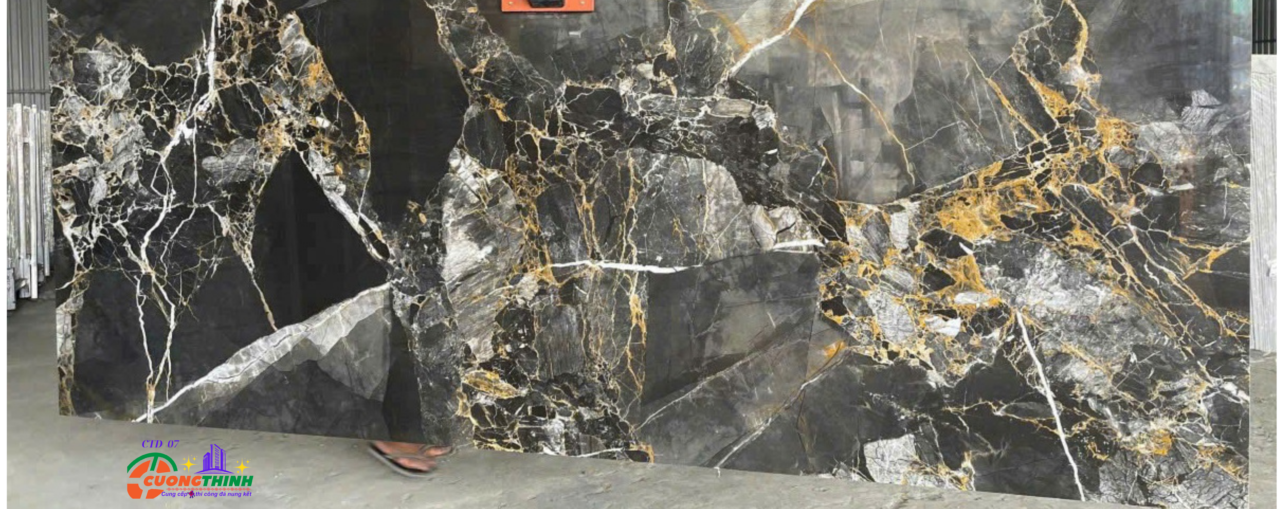 - Vân vàng và trắng nổi bật trên nền đen tạo chiều sâu, làm tăng tính nghệ thuật cho không gian.