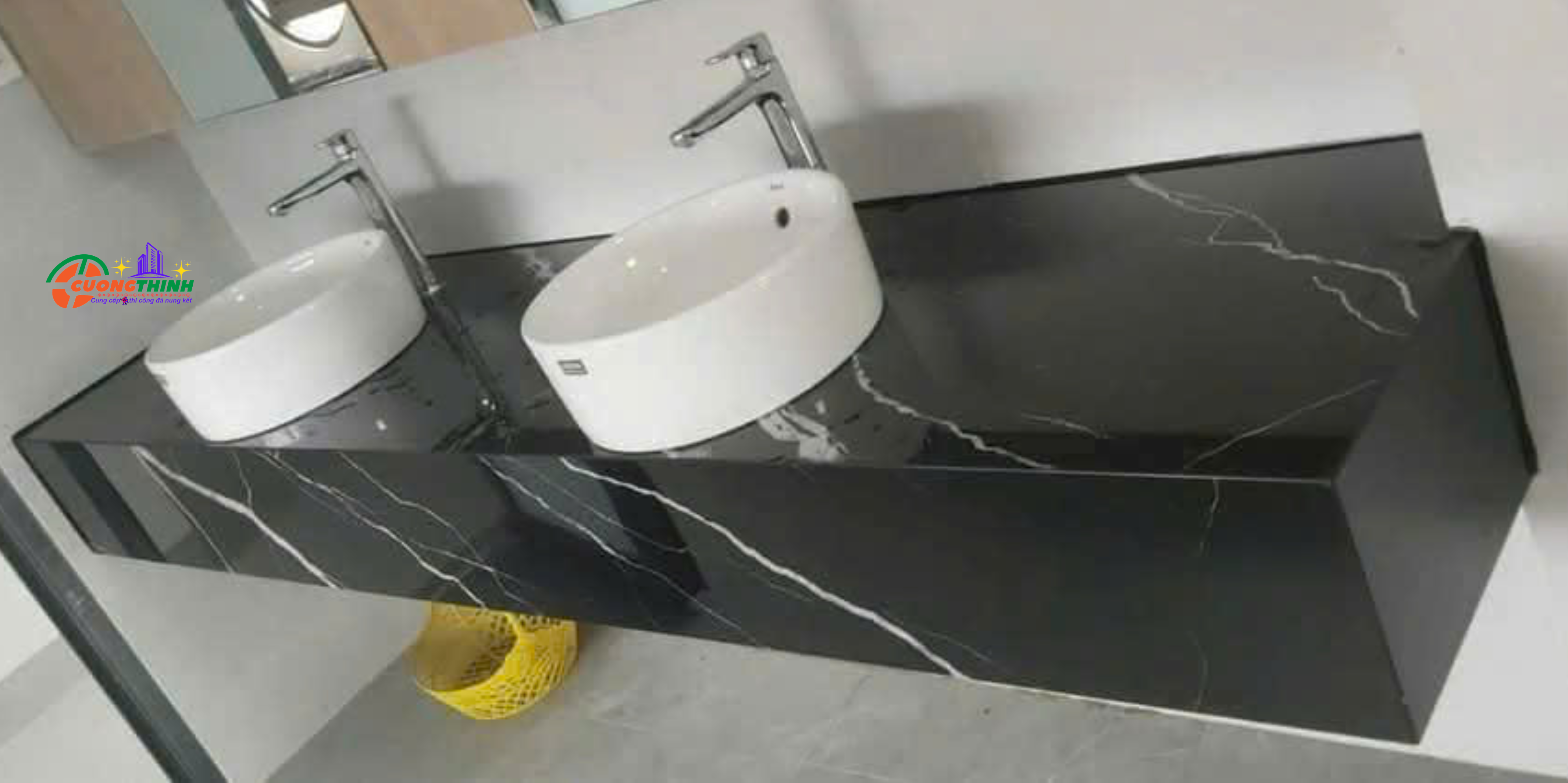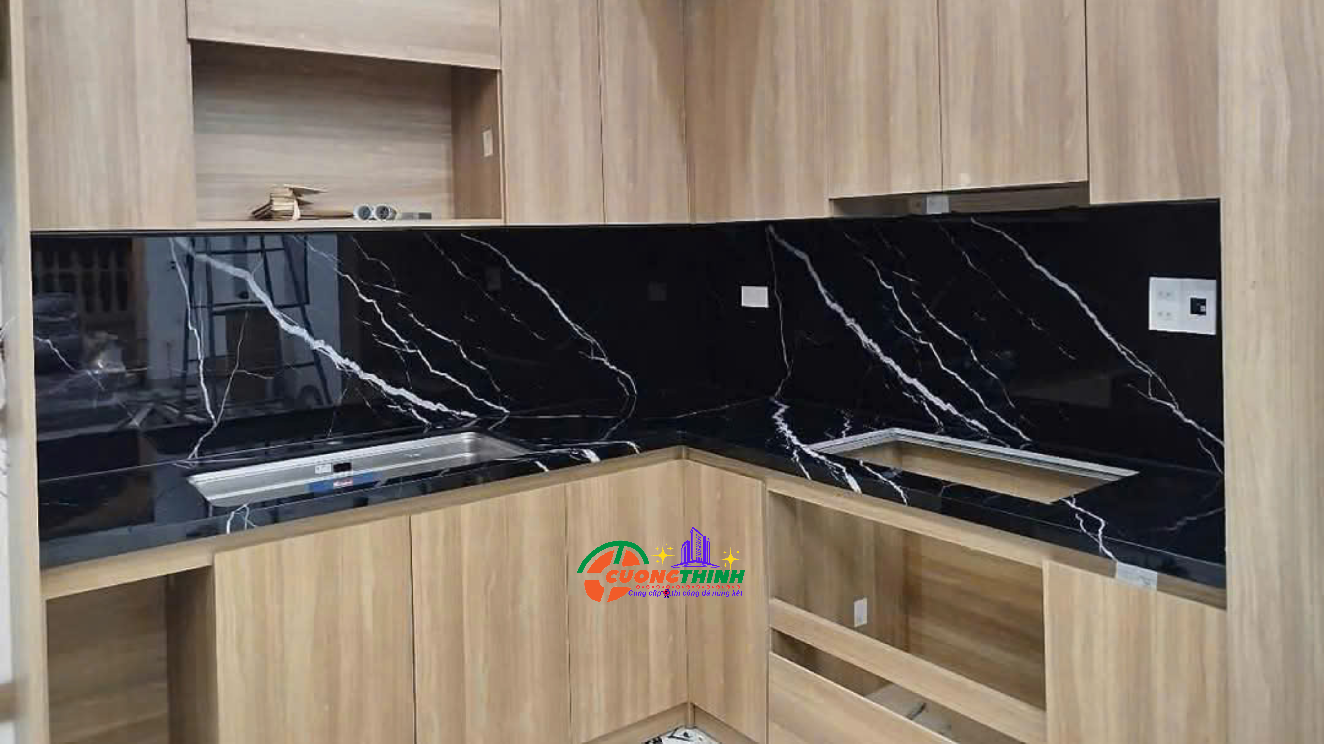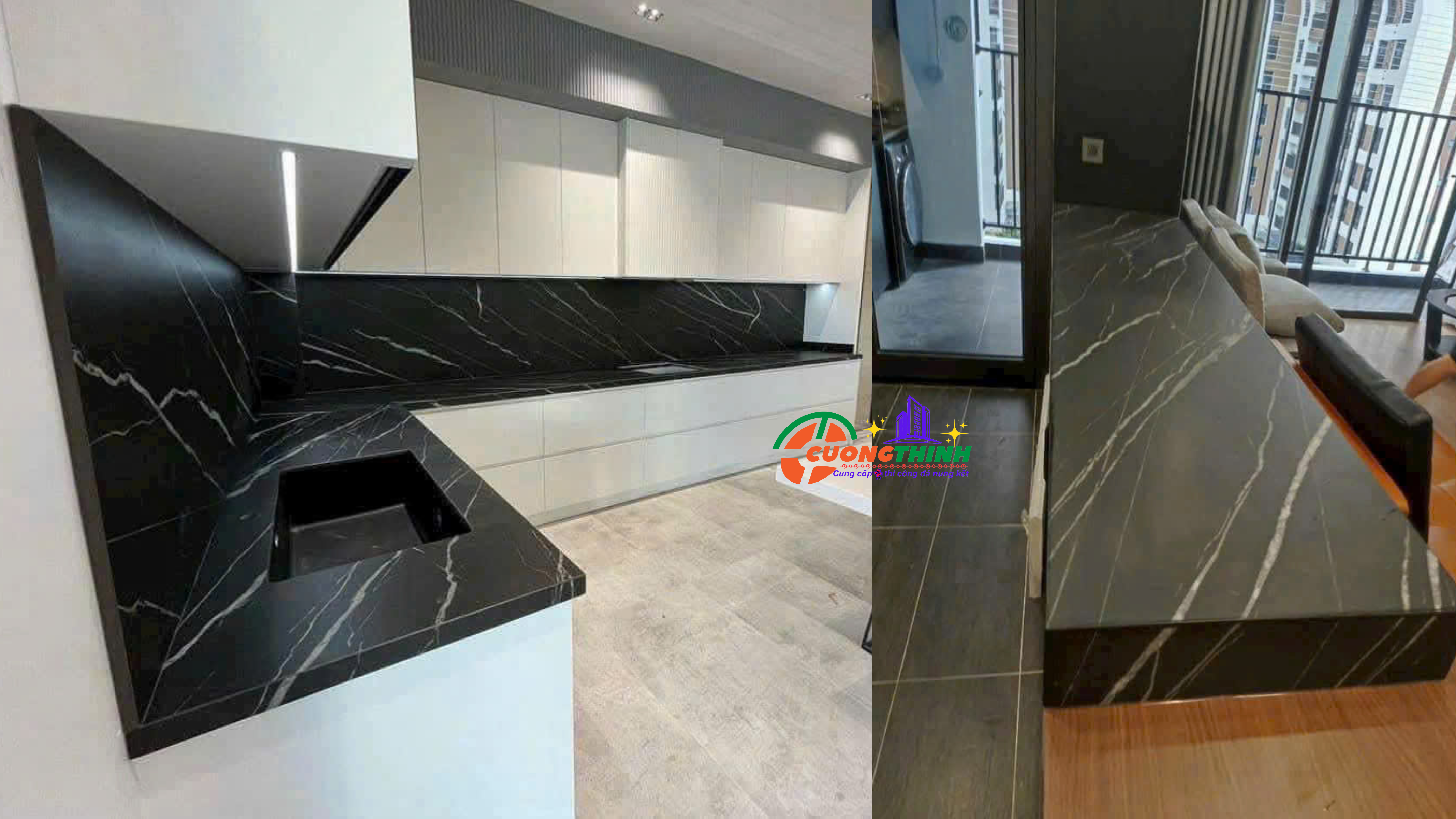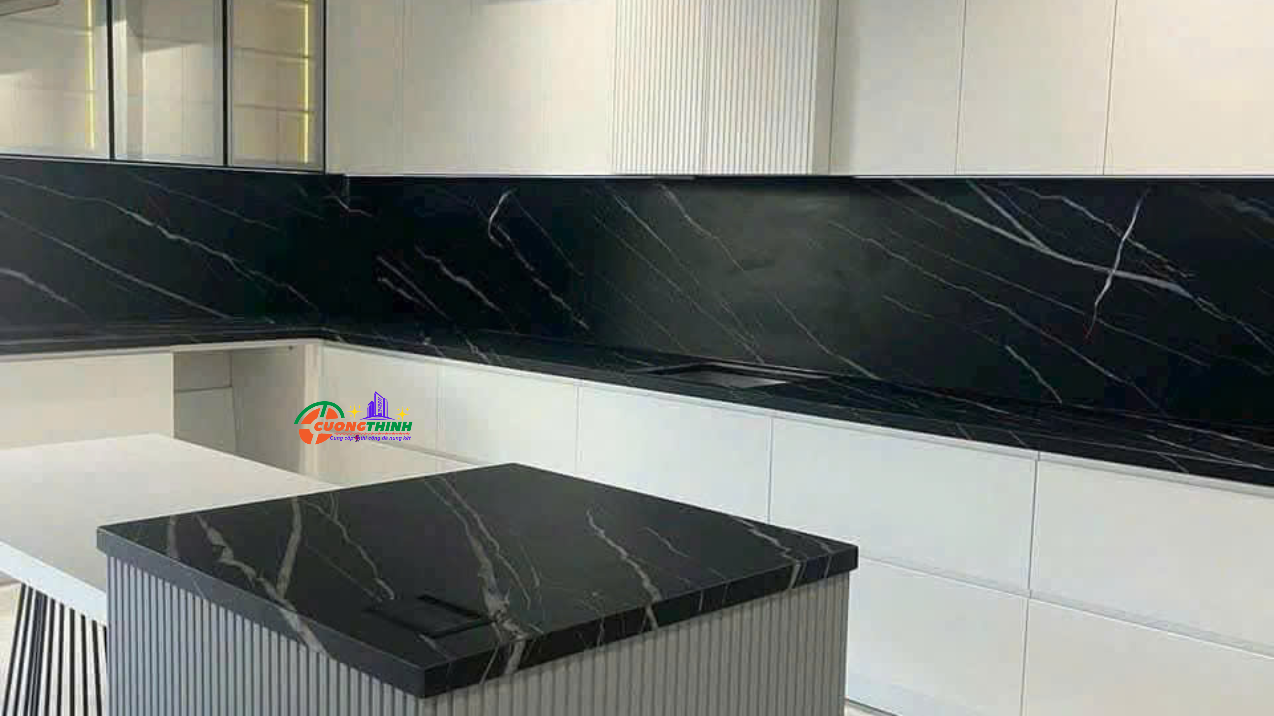 - Thẩm mỹ cao: Vân trắng nổi bật trên nền đen tạo chiều sâu, làm tăng tính nghệ thuật cho không gian. Phù hợp với phong cách thiết kế tối giản, hiện đại, hoặc cổ điển sang trọng.