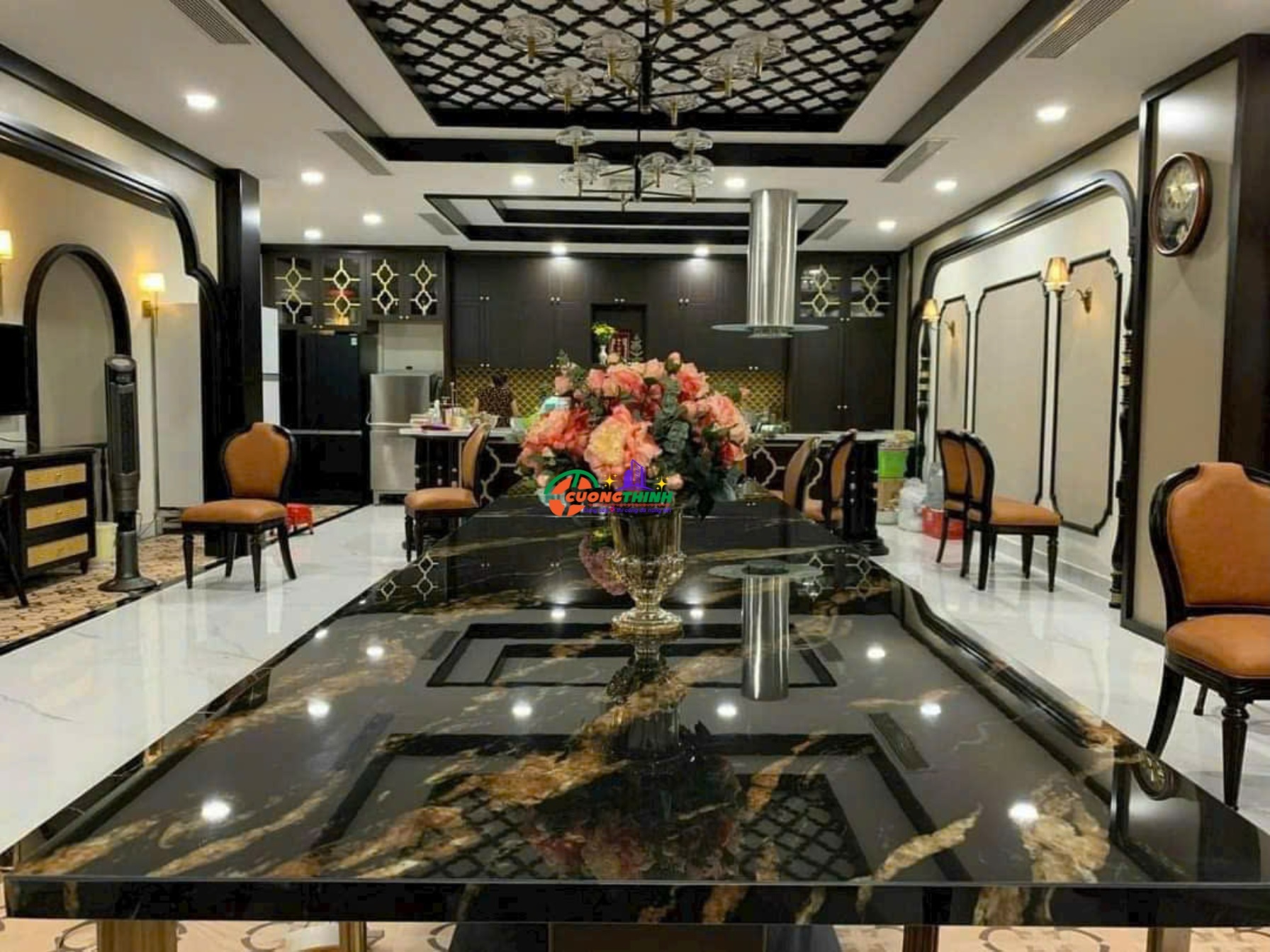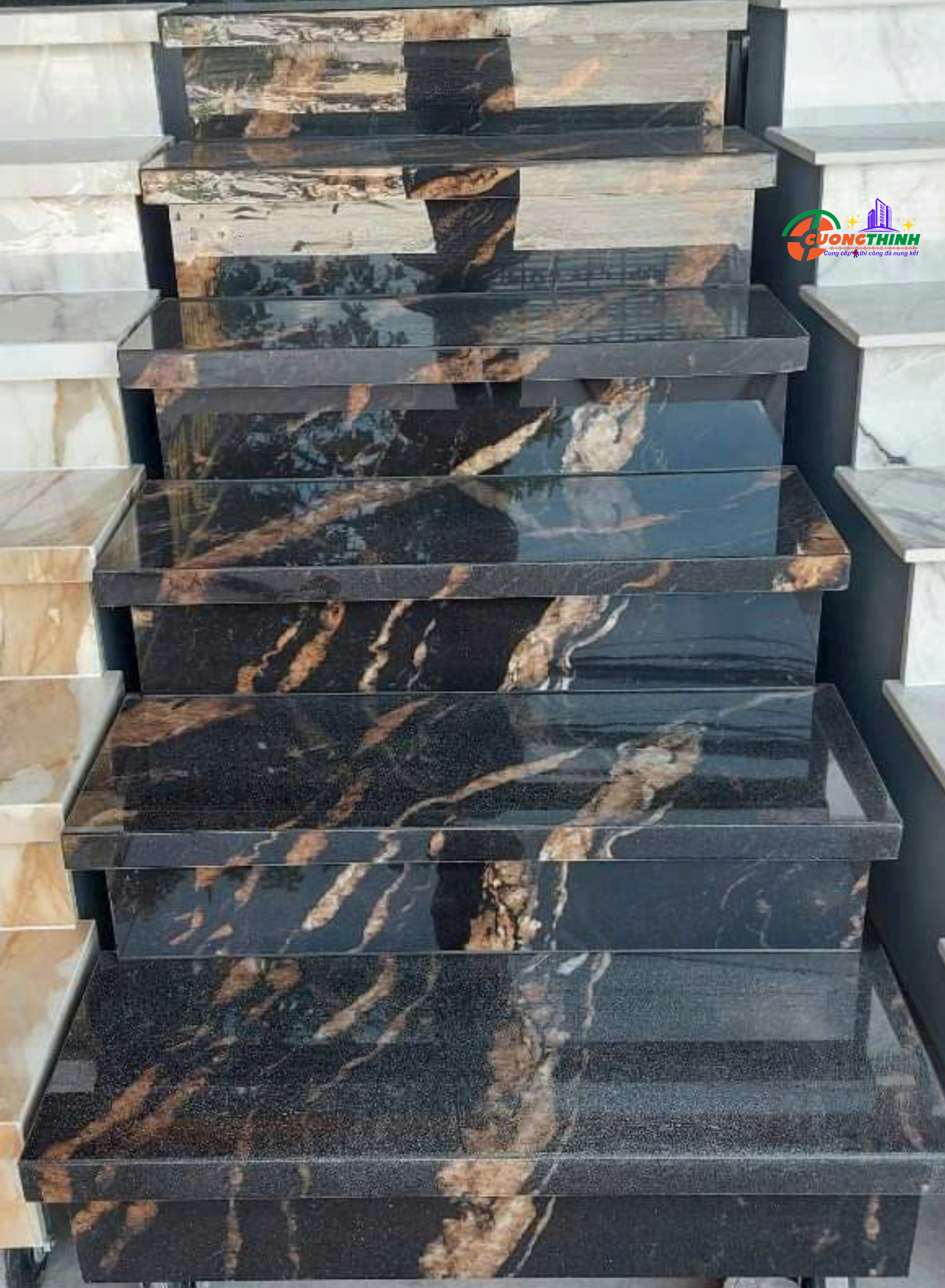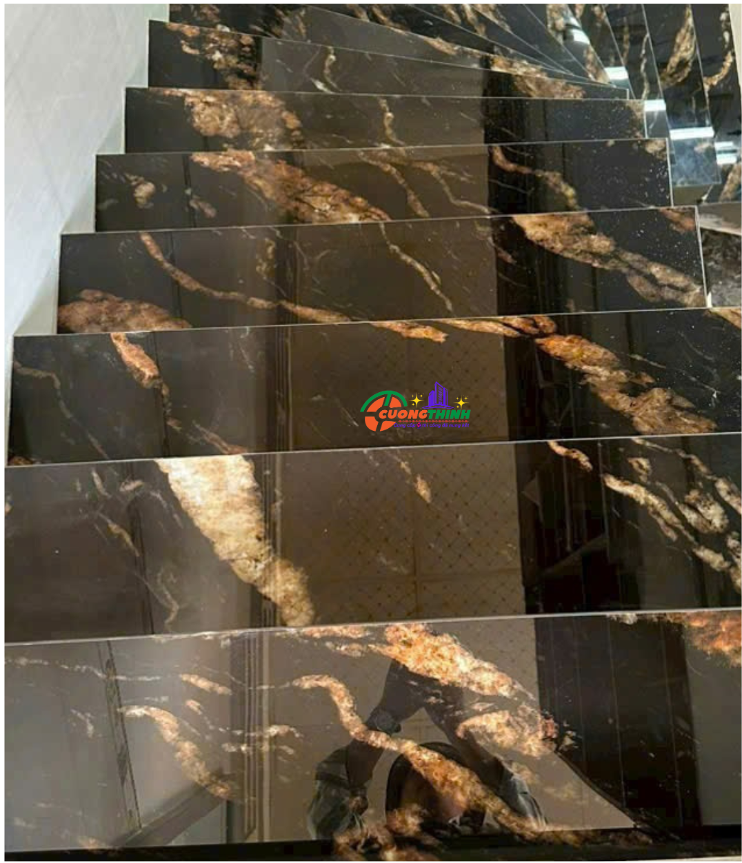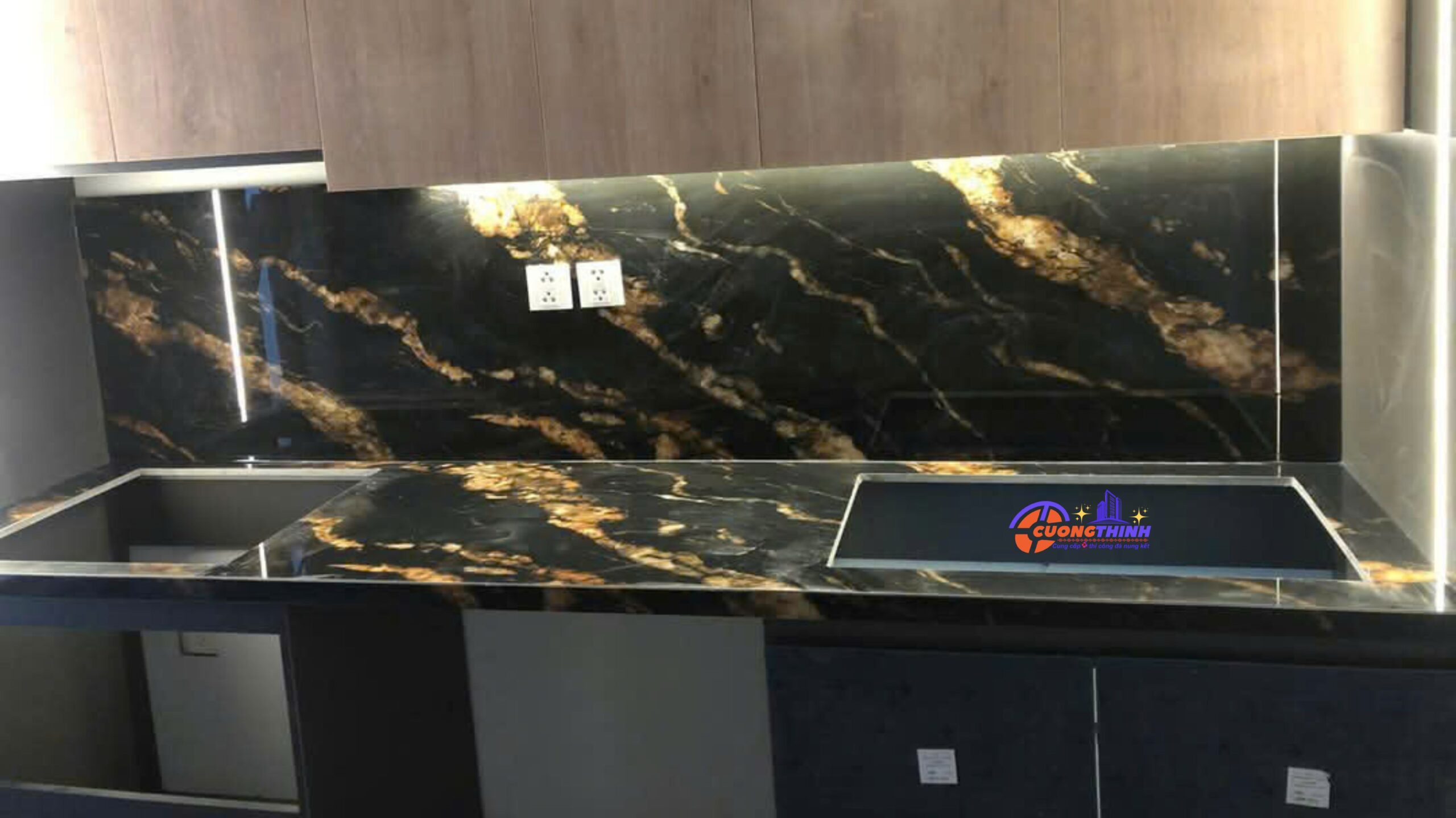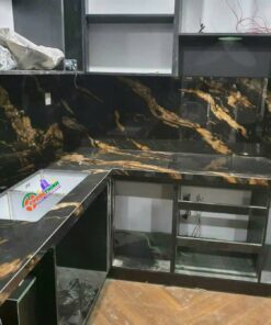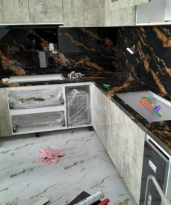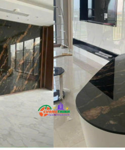 - Thẩm mỹ cao: Vân mây vàng nổi bật trên nền đen tạo chiều sâu, làm tăng tính nghệ thuật cho không gian. Phù hợp với phong cách thiết kế tối giản, hiện đại, hoặc cổ điển sang trọng.