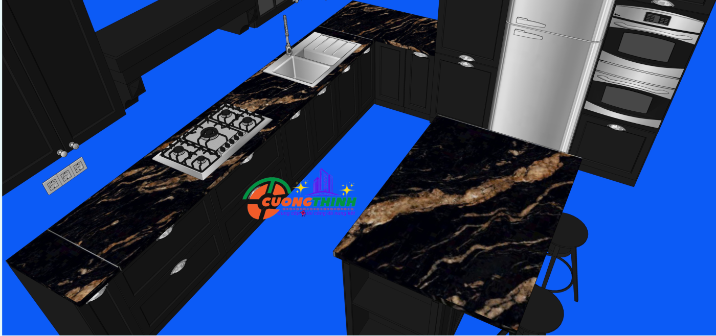 - Bàn bếp và bàn ăn: Độ bền cao, dễ vệ sinh, mang đến sự sang trọng và tiện ích.