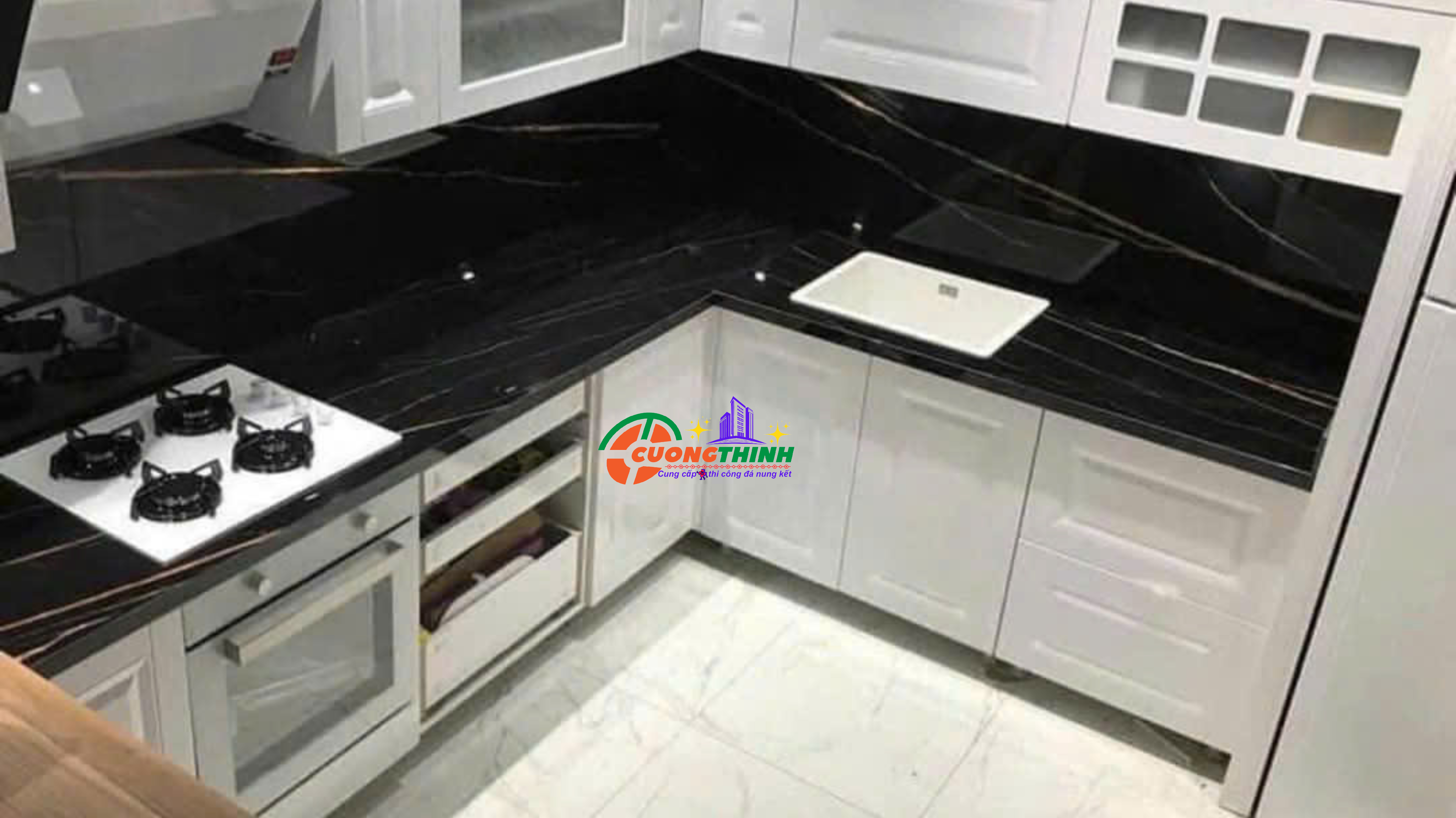 Đá nung kết vâng vàng nền đen CTD-15 là một sản phẩm cao cấp, được sản xuất từ quy trình nung kết hiện đại, mang đến vẻ đẹp độc đáo và tính năng vượt trội. Loại đá này có bề mặt màu đen chủ đạo, kết hợp với các đường vân trắng tự nhiên, tạo nên sự sang trọng và phong cách.