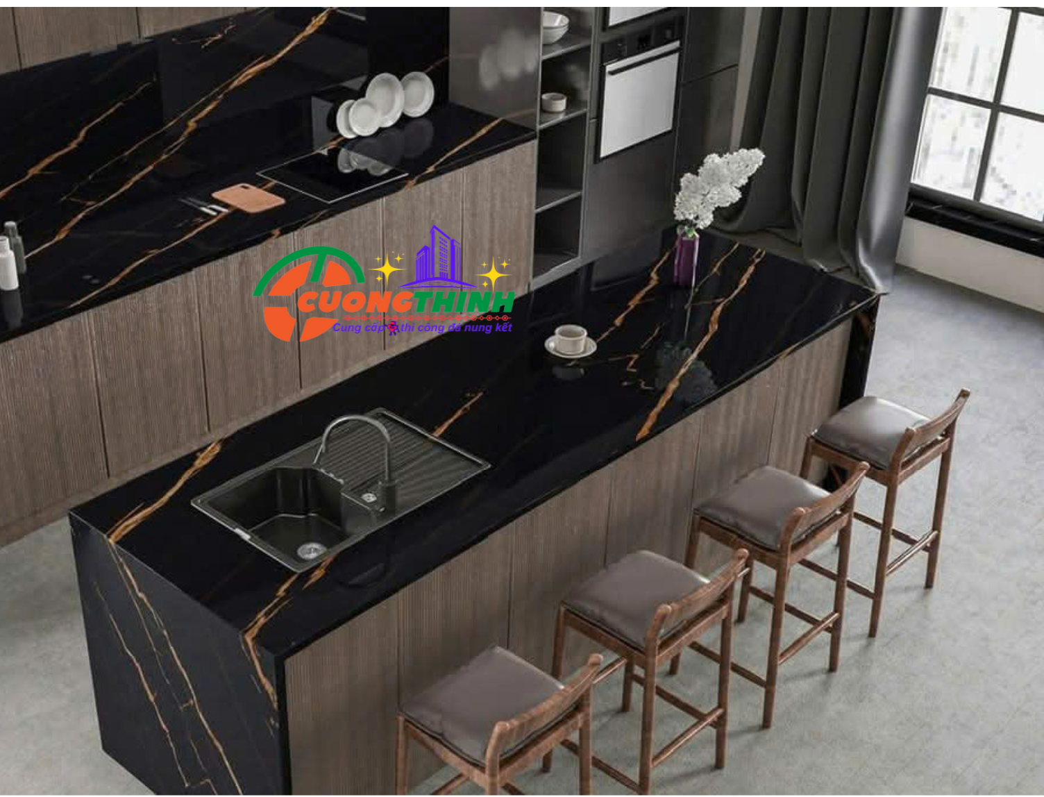 - Thẩm mỹ cao: Vân vàng nổi bật trên nền đen tạo chiều sâu, làm tăng tính nghệ thuật cho không gian. Phù hợp với phong cách thiết kế tối giản, hiện đại, hoặc cổ điển sang trọng.