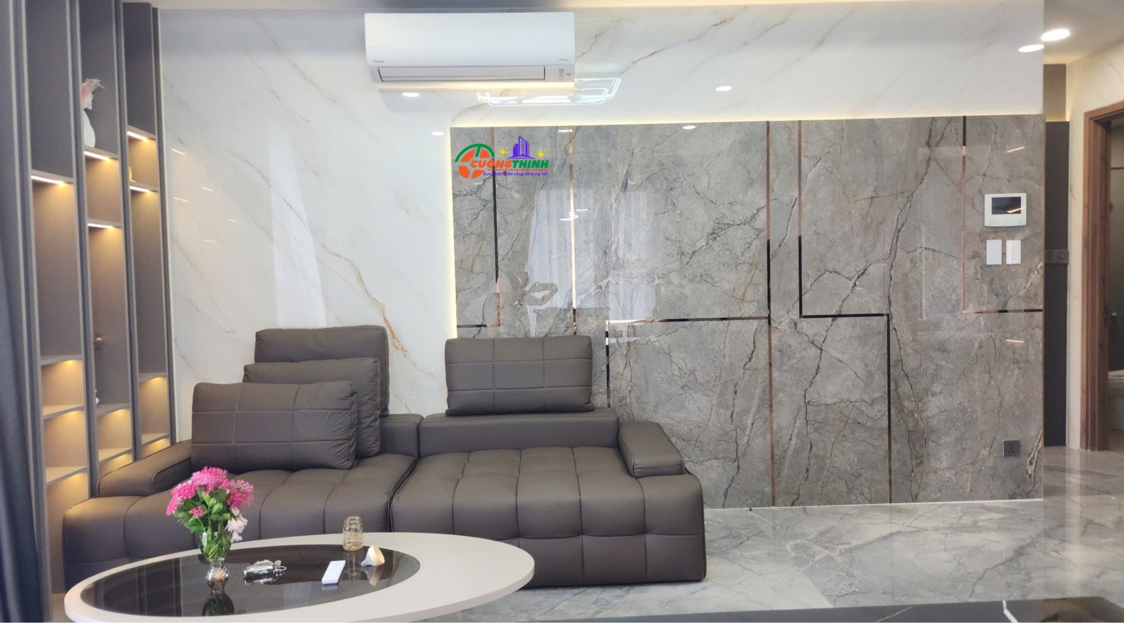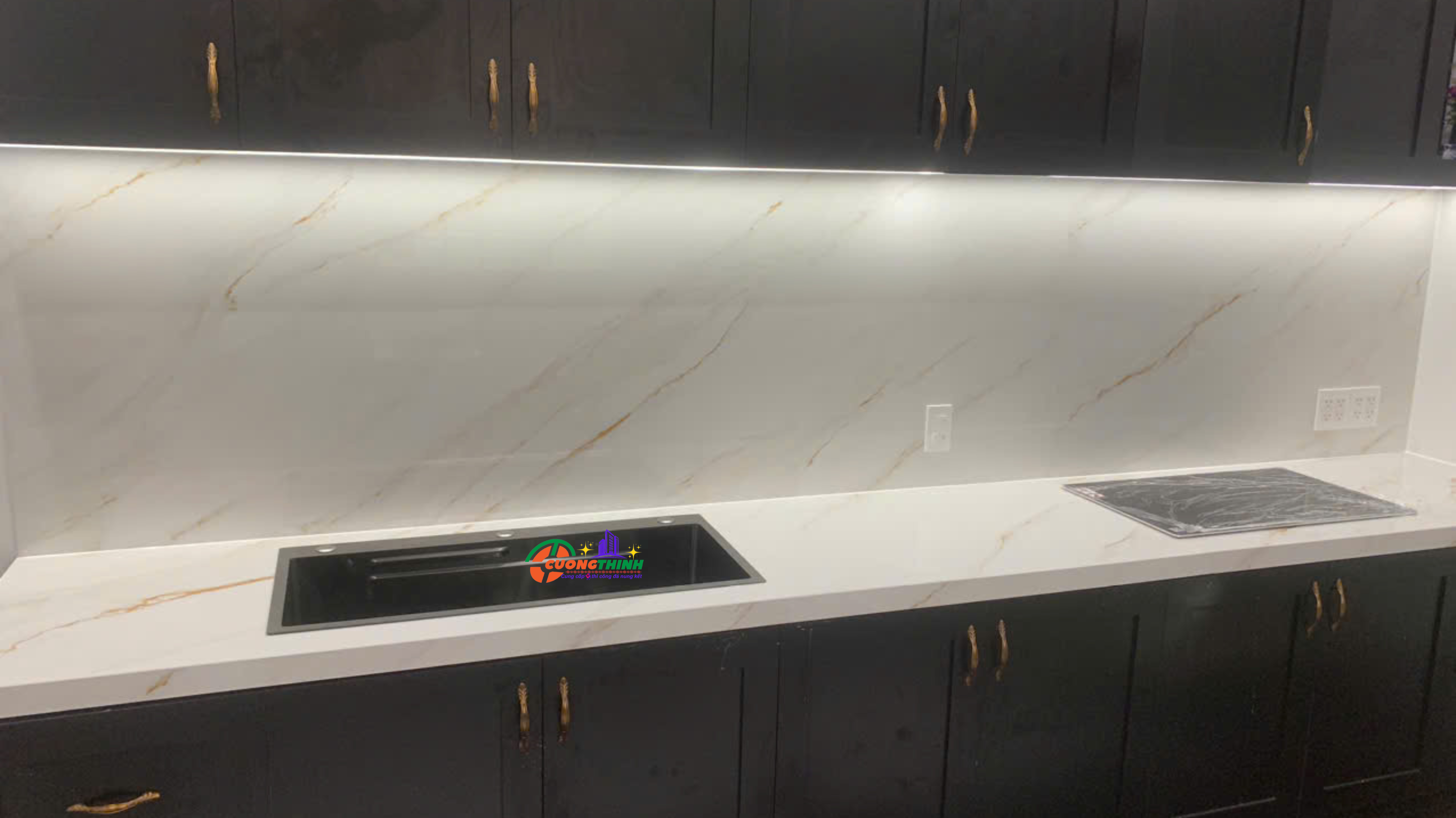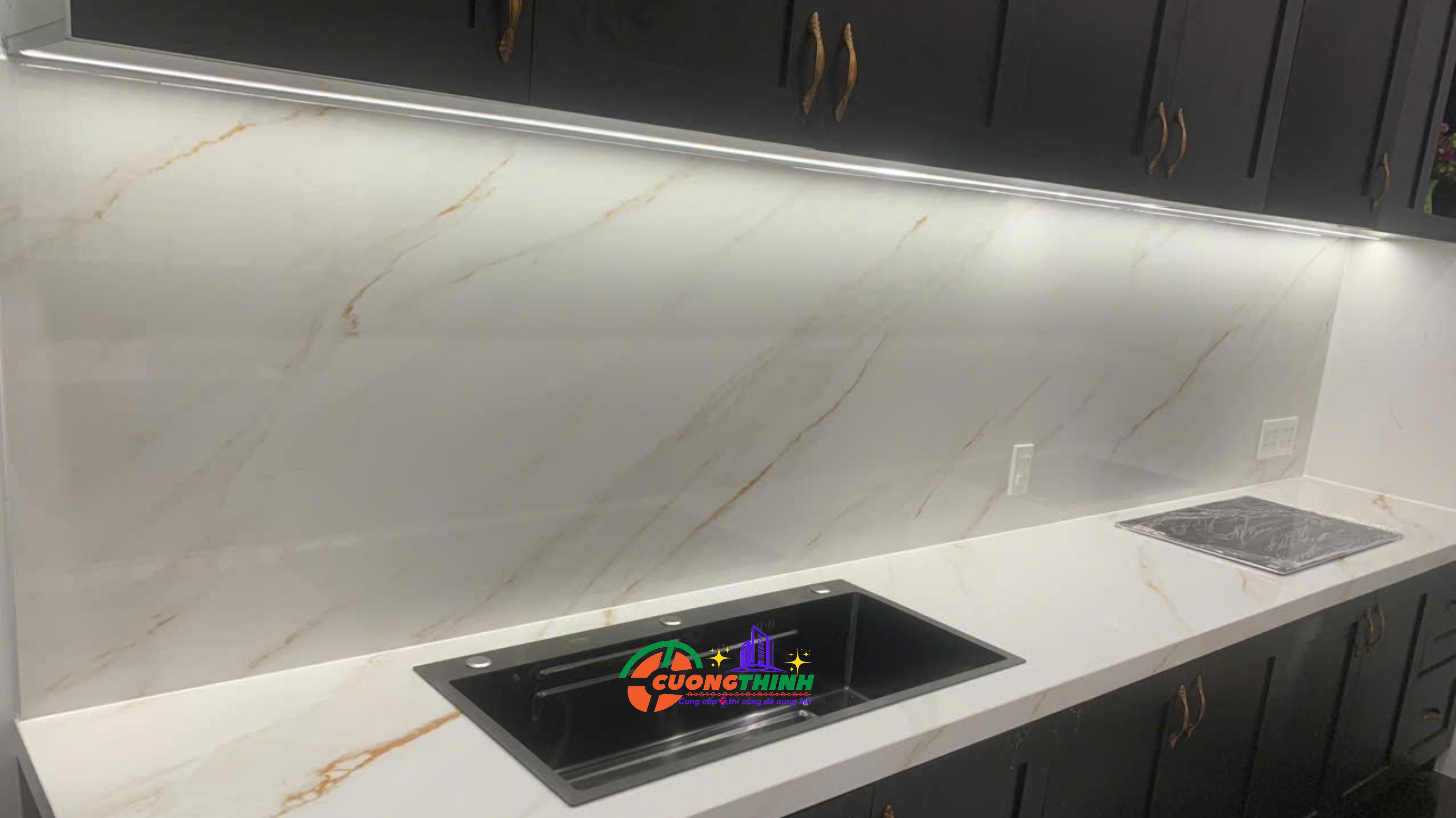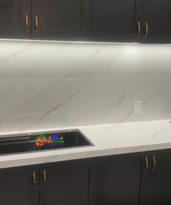 - Thẩm mỹ cao: Vân vàng tự nhiên nổi bật trên nền trắng tạo chiều sâu, làm tăng tính nghệ thuật cho không gian. Phù hợp với phong cách thiết kế tối giản, hiện đại, hoặc cổ điển sang trọng.