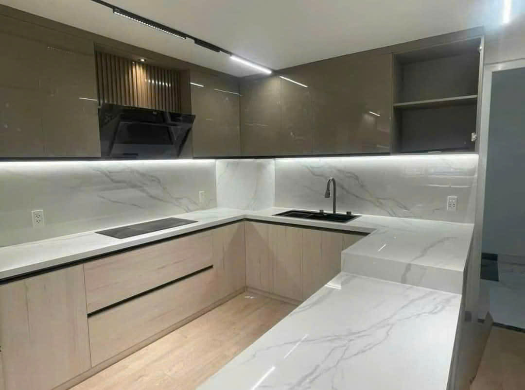 - Bàn bếp và bàn ăn: Độ bền cao, dễ vệ sinh, mang đến sự sang trọng và tiện ích.
