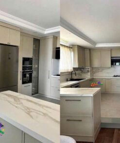 - Bàn bếp và bàn ăn: Độ bền cao, dễ vệ sinh, mang đến sự sang trọng và tiện ích.