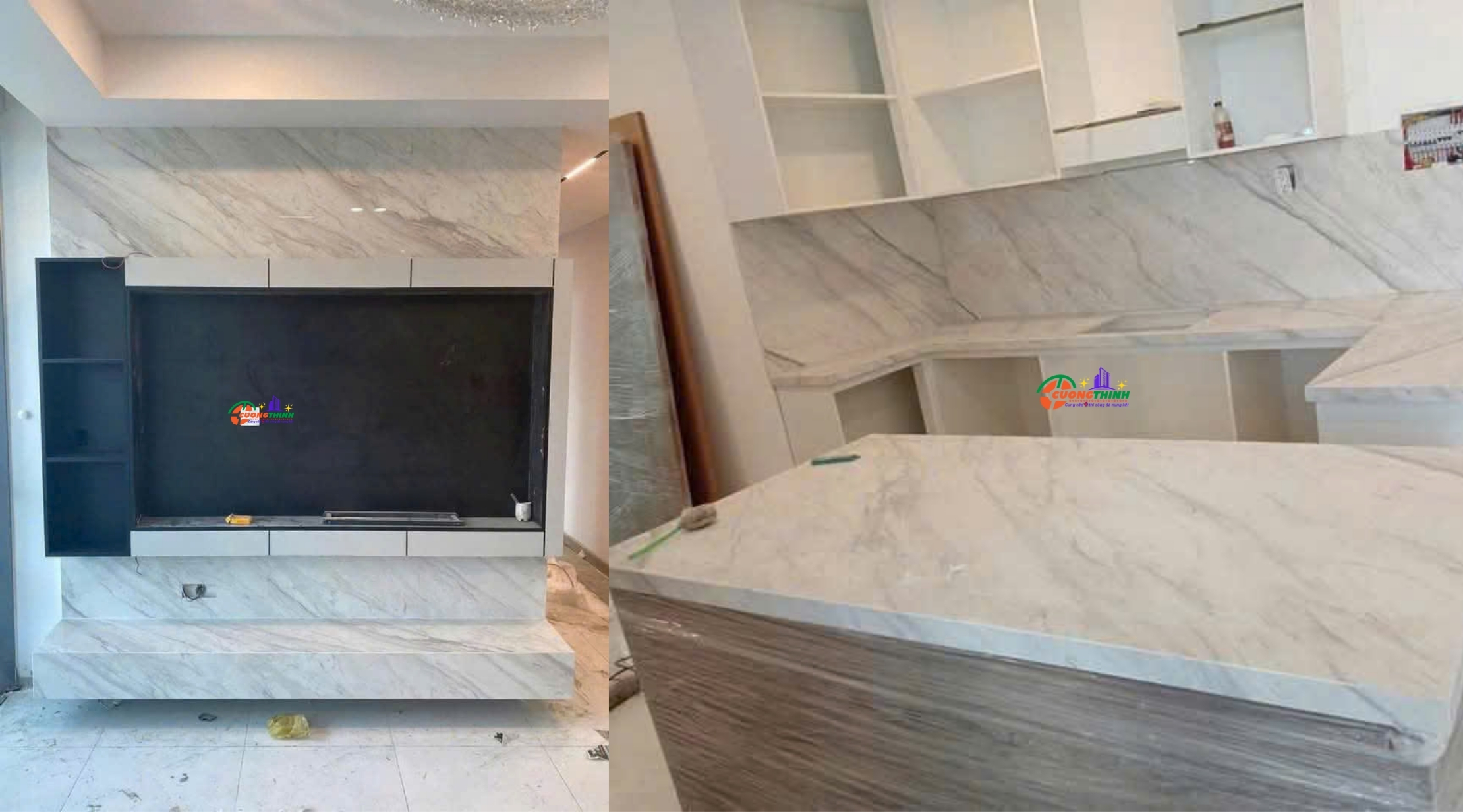 - Thẩm mỹ cao: Vân tự nhiên nổi bật trên nền trắng tạo chiều sâu, làm tăng tính nghệ thuật cho không gian. Phù hợp với phong cách thiết kế tối giản, hiện đại, hoặc cổ điển sang trọng.
