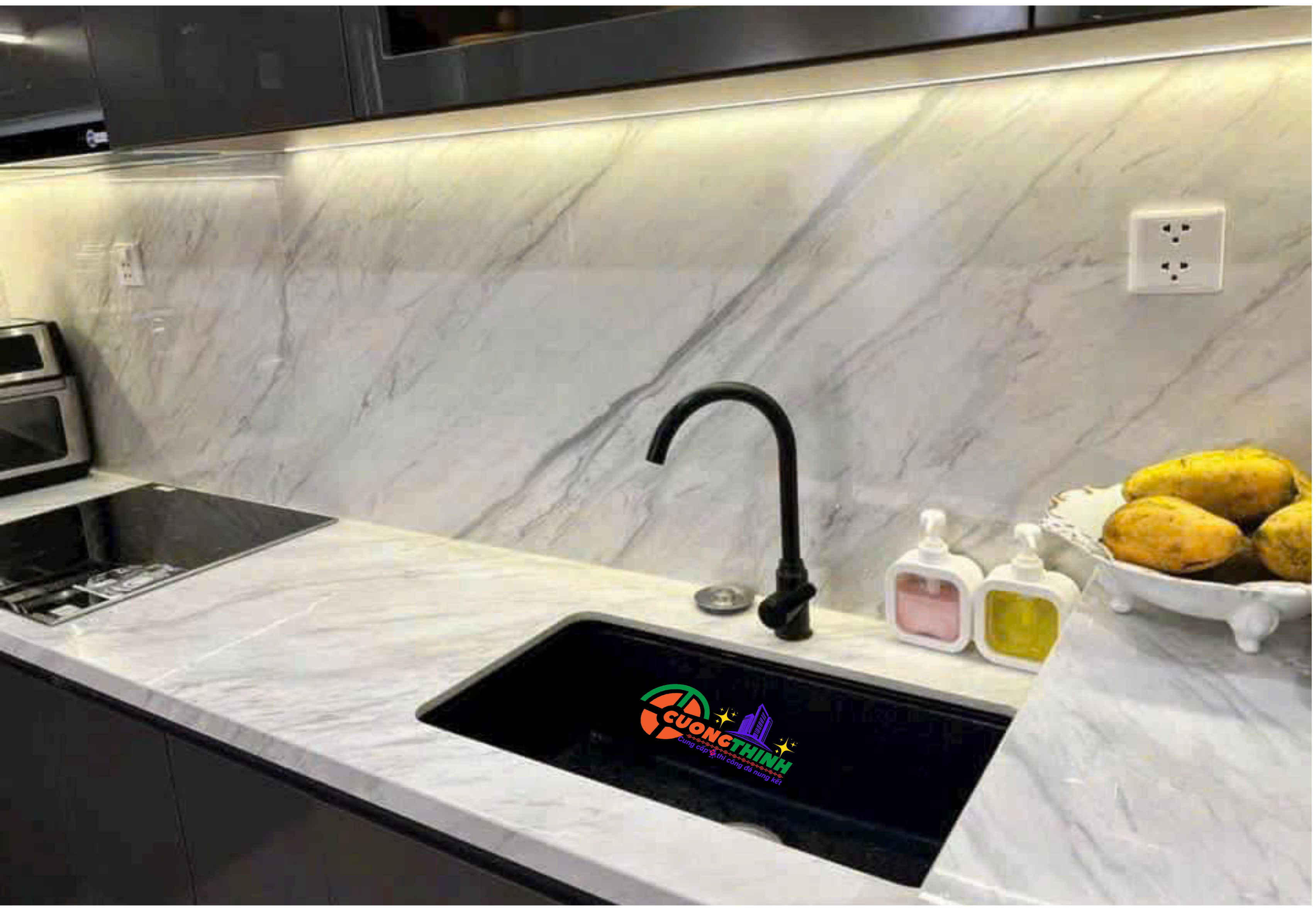 - Bàn bếp và bàn ăn: Độ bền cao, dễ vệ sinh, mang đến sự sang trọng và tiện ích.