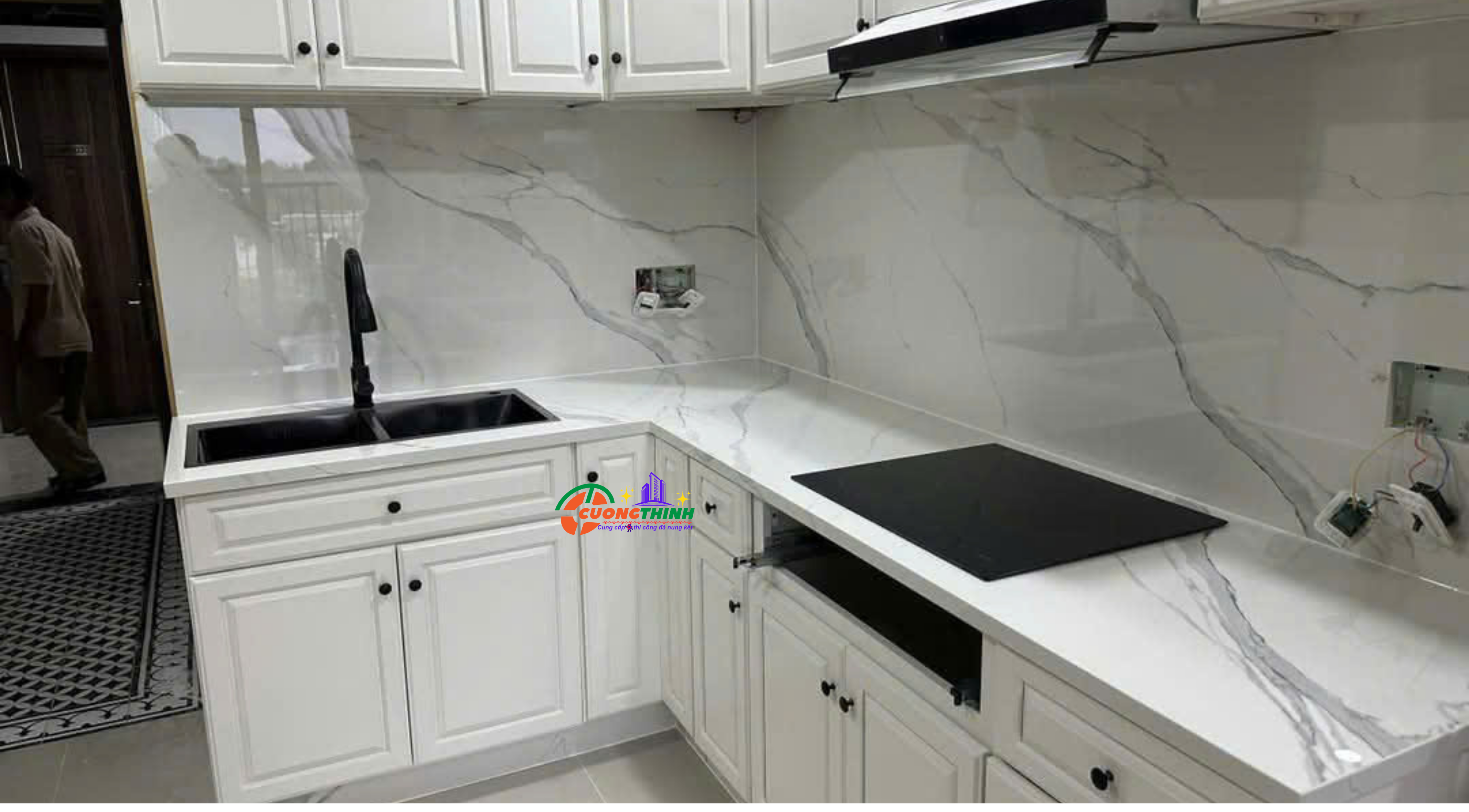 - Bàn bếp và bàn ăn: Độ bền cao, dễ vệ sinh, mang đến sự sang trọng và tiện ích.