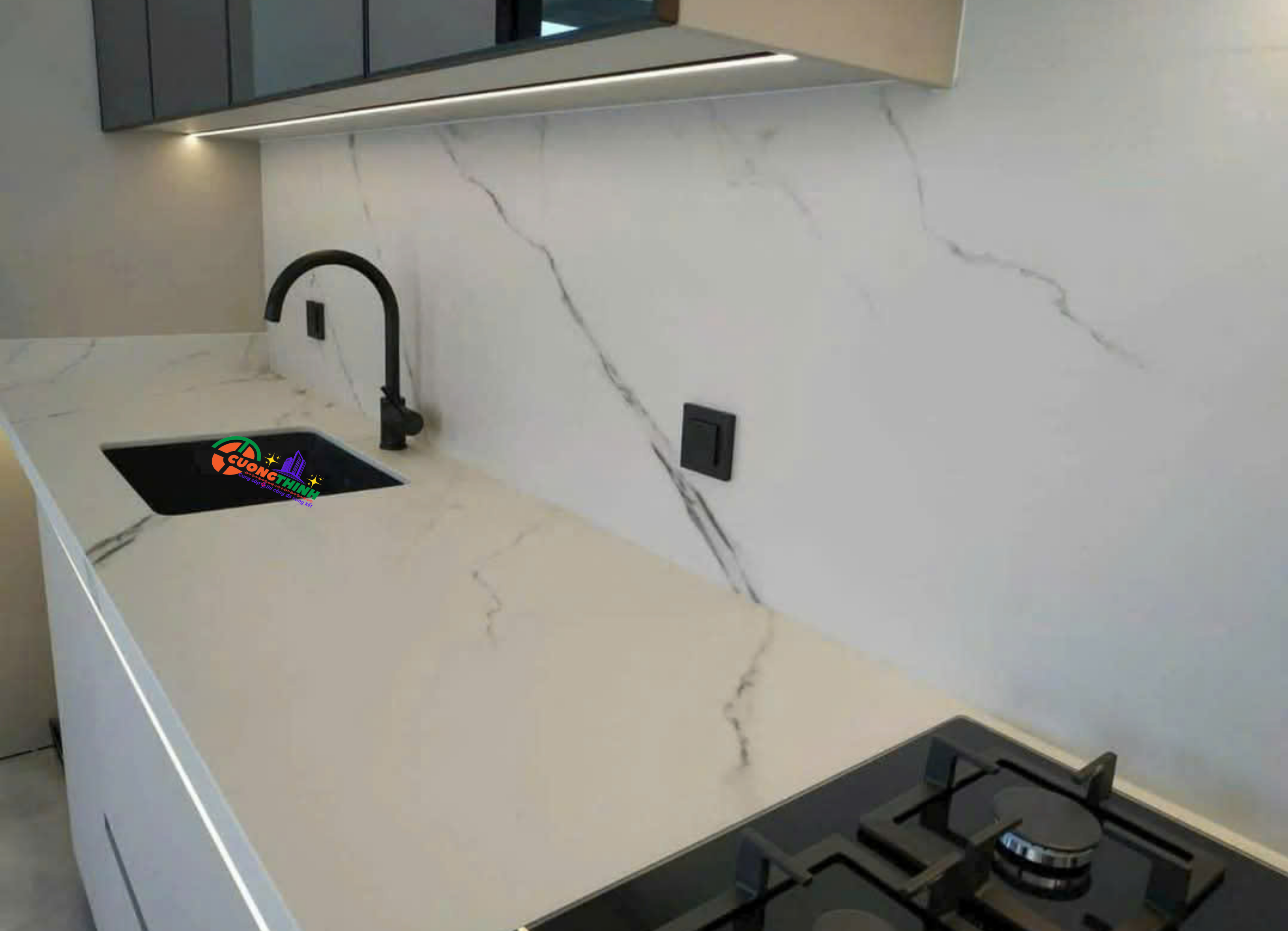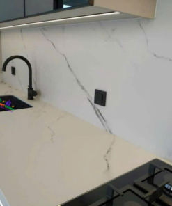 Đá nung kết trắng CTT-35 là một sản phẩm cao cấp, được sản xuất từ quy trình nung kết hiện đại, mang đến vẻ đẹp tinh tế và tính năng vượt trội. Loại đá này có bề mặt màu trắng chủ đạo, kết hợp với các đường vân tự nhiên, tạo nên sự sang trọng và phong cách.