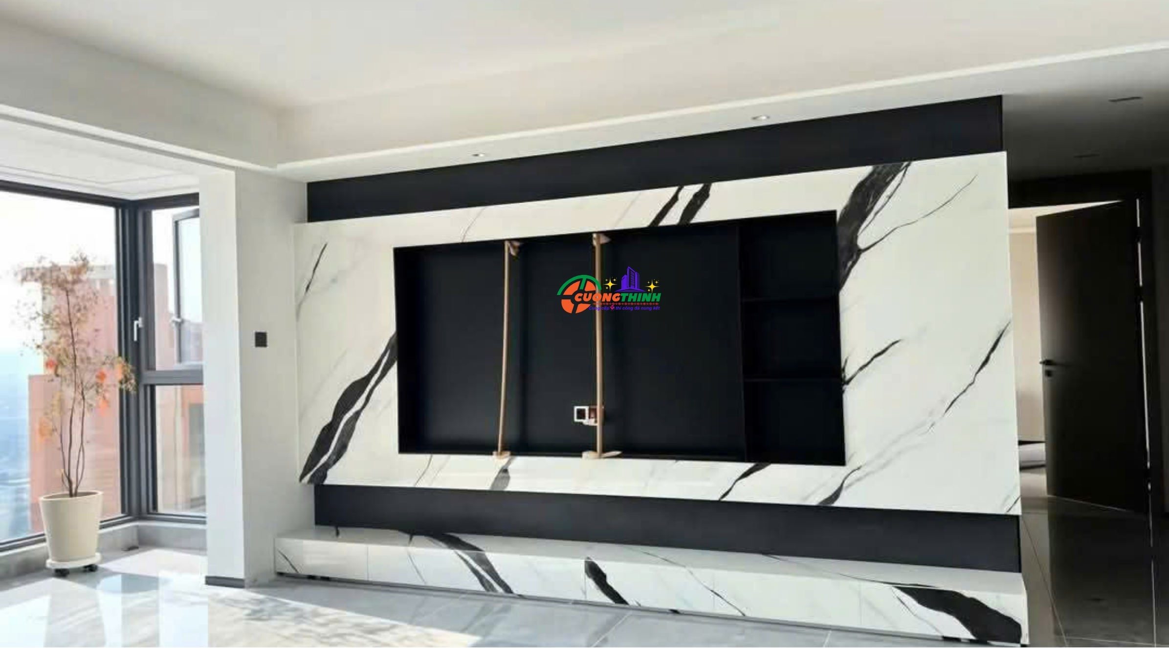 - Thẩm mỹ cao: Vân tự nhiên nổi bật trên nền trắng tạo chiều sâu, làm tăng tính nghệ thuật cho không gian. Phù hợp với phong cách thiết kế tối giản, hiện đại, hoặc cổ điển sang trọng.