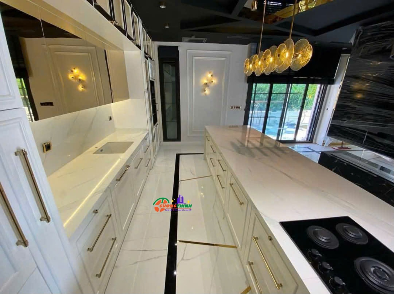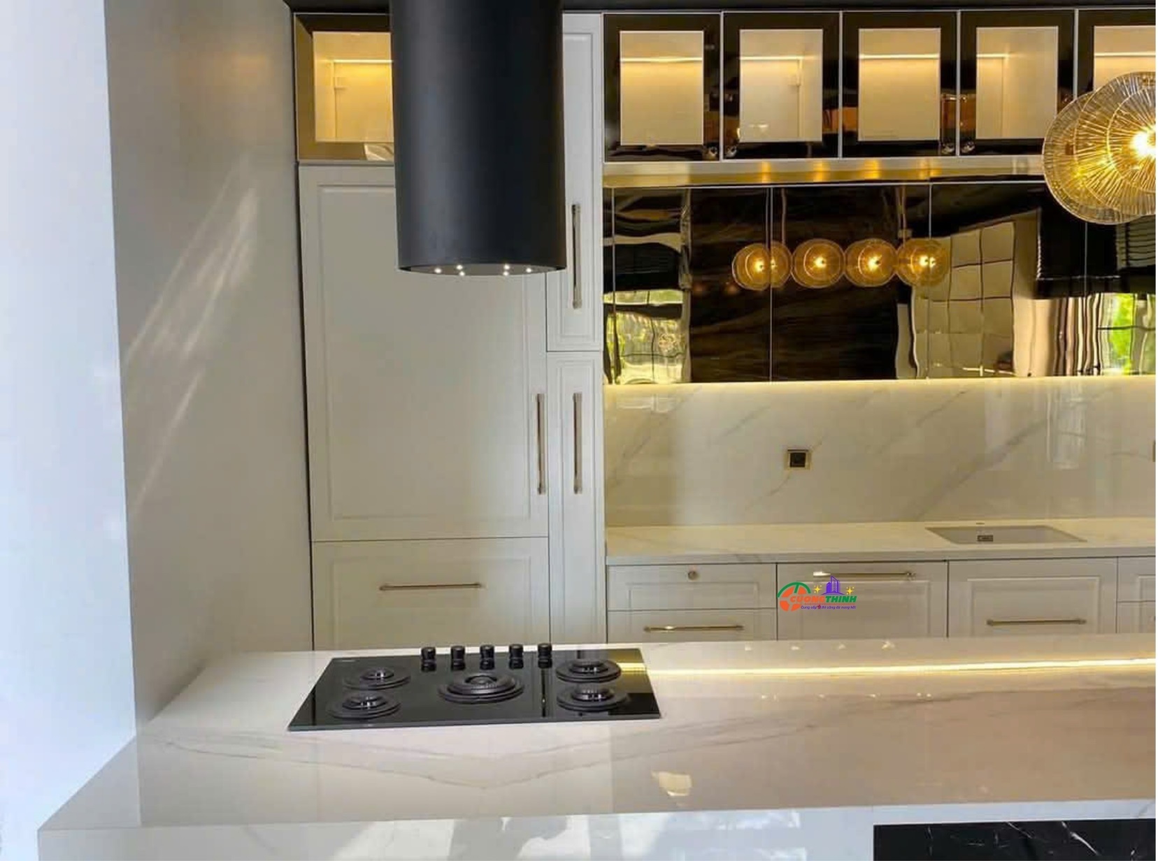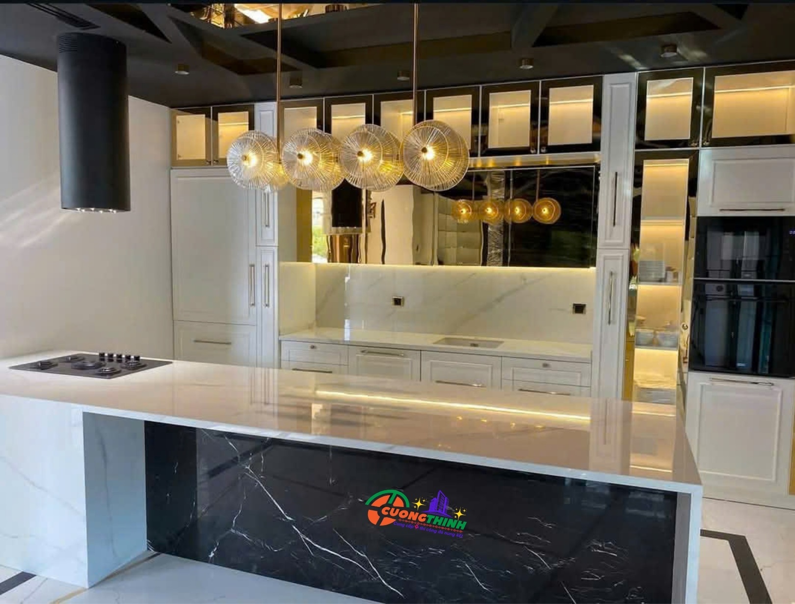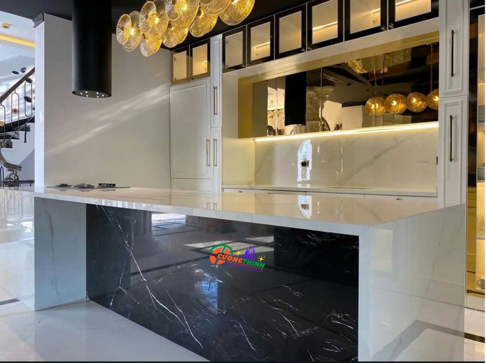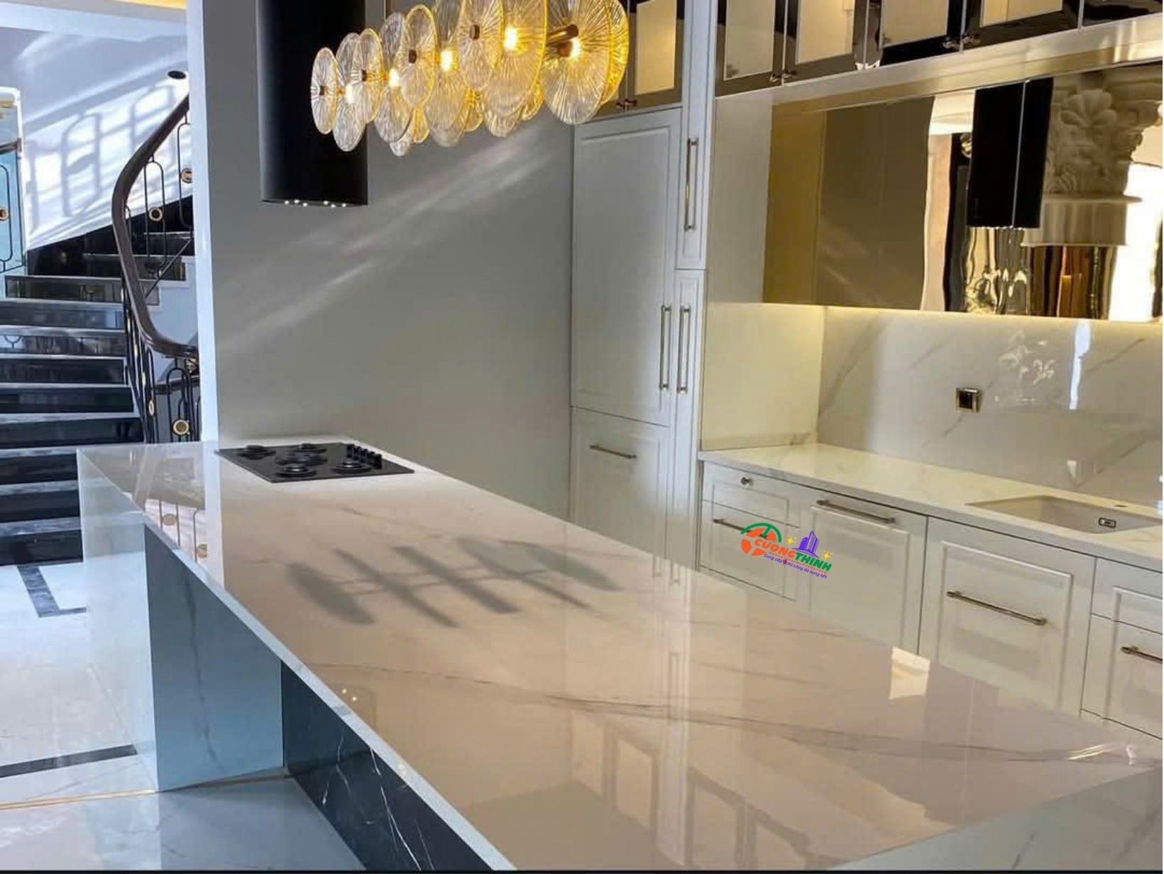 - Bàn bếp và bàn ăn: Độ bền cao, dễ vệ sinh, mang đến sự sang trọng và tiện ích.