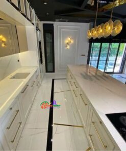 Đá nung kết trắng CTT-45 là một sản phẩm cao cấp, được sản xuất từ quy trình nung kết hiện đại, mang đến vẻ đẹp tinh tế và tính năng vượt trội. Loại đá này có bề mặt màu trắng chủ đạo, kết hợp với các đường vân tự nhiên, tạo nên sự sang trọng và phong cách.