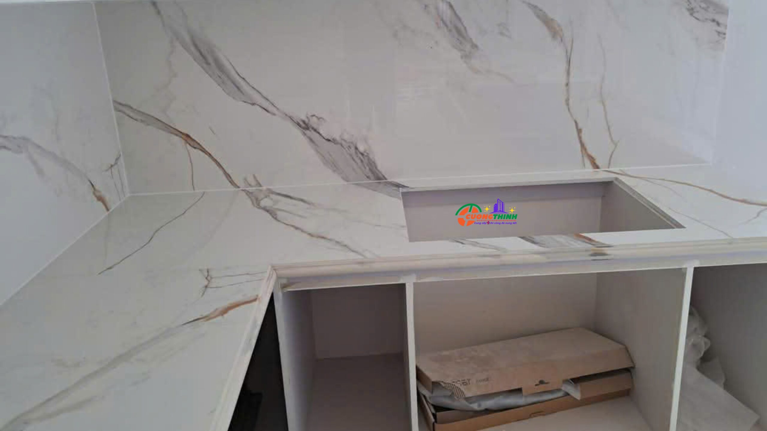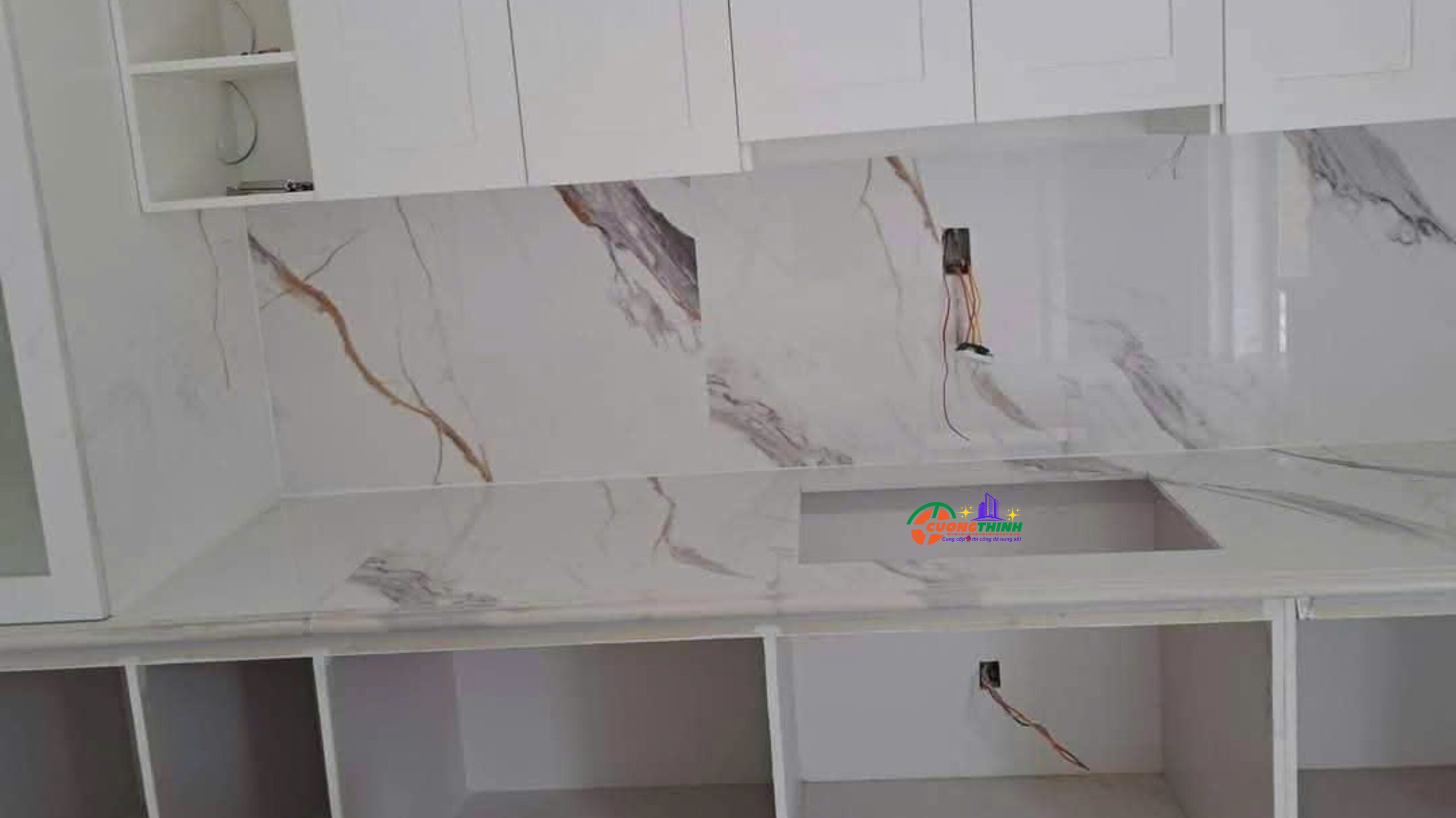- Thẩm mỹ cao: Vân tự nhiên nổi bật trên nền trắng tạo chiều sâu, làm tăng tính nghệ thuật cho không gian. Phù hợp với phong cách thiết kế tối giản, hiện đại, hoặc cổ điển sang trọng.