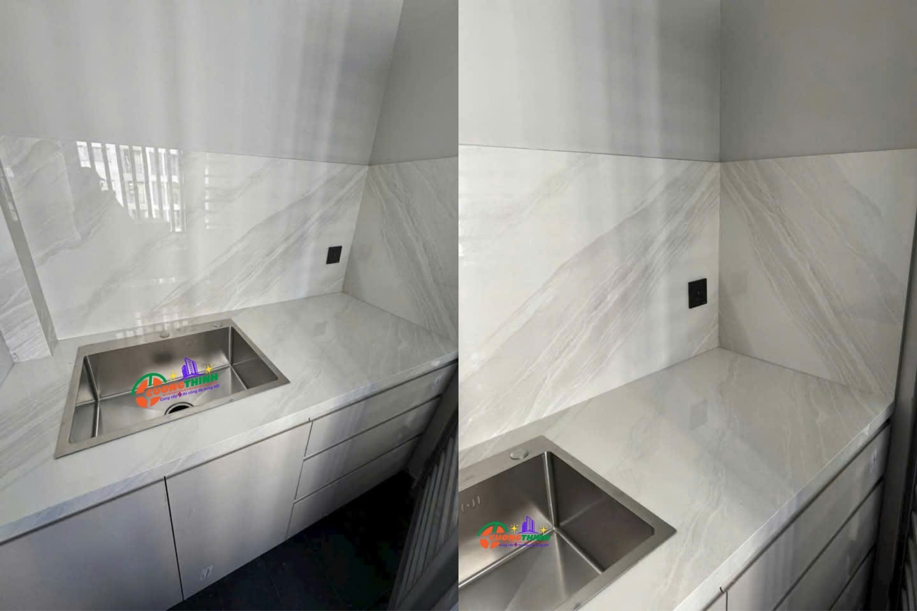 - Thẩm mỹ cao: Vân tự nhiên nổi bật trên nền trắng tạo chiều sâu, làm tăng tính nghệ thuật cho không gian. Phù hợp với phong cách thiết kế tối giản, hiện đại, hoặc cổ điển sang trọng.