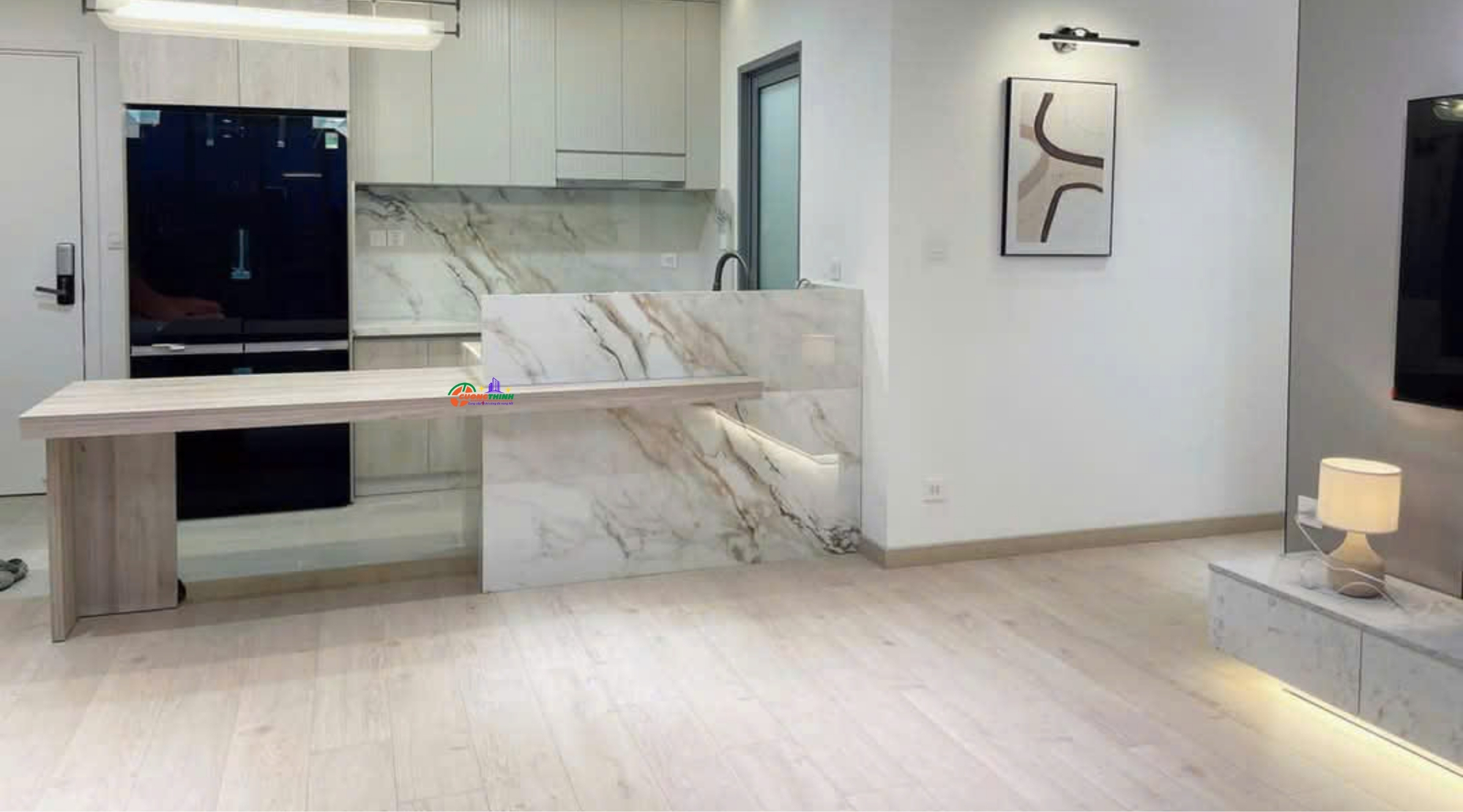 - Thẩm mỹ cao: Vân tự nhiên nổi bật trên nền trắng tạo chiều sâu, làm tăng tính nghệ thuật cho không gian. Phù hợp với phong cách thiết kế tối giản, hiện đại, hoặc cổ điển sang trọng.