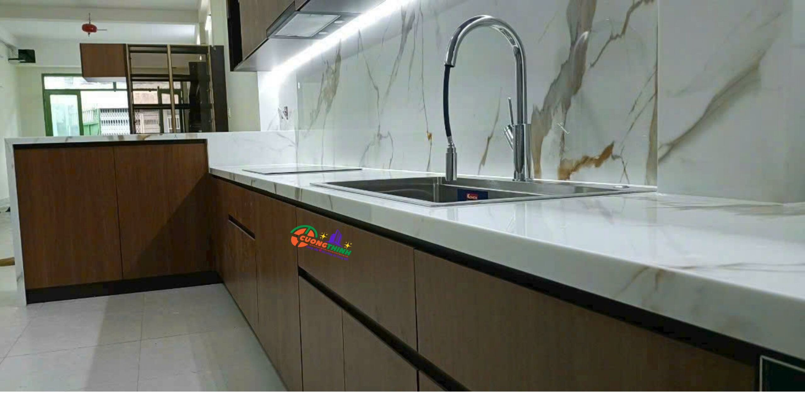 - Bàn bếp và bàn ăn: Độ bền cao, dễ vệ sinh, mang đến sự sang trọng và tiện ích.