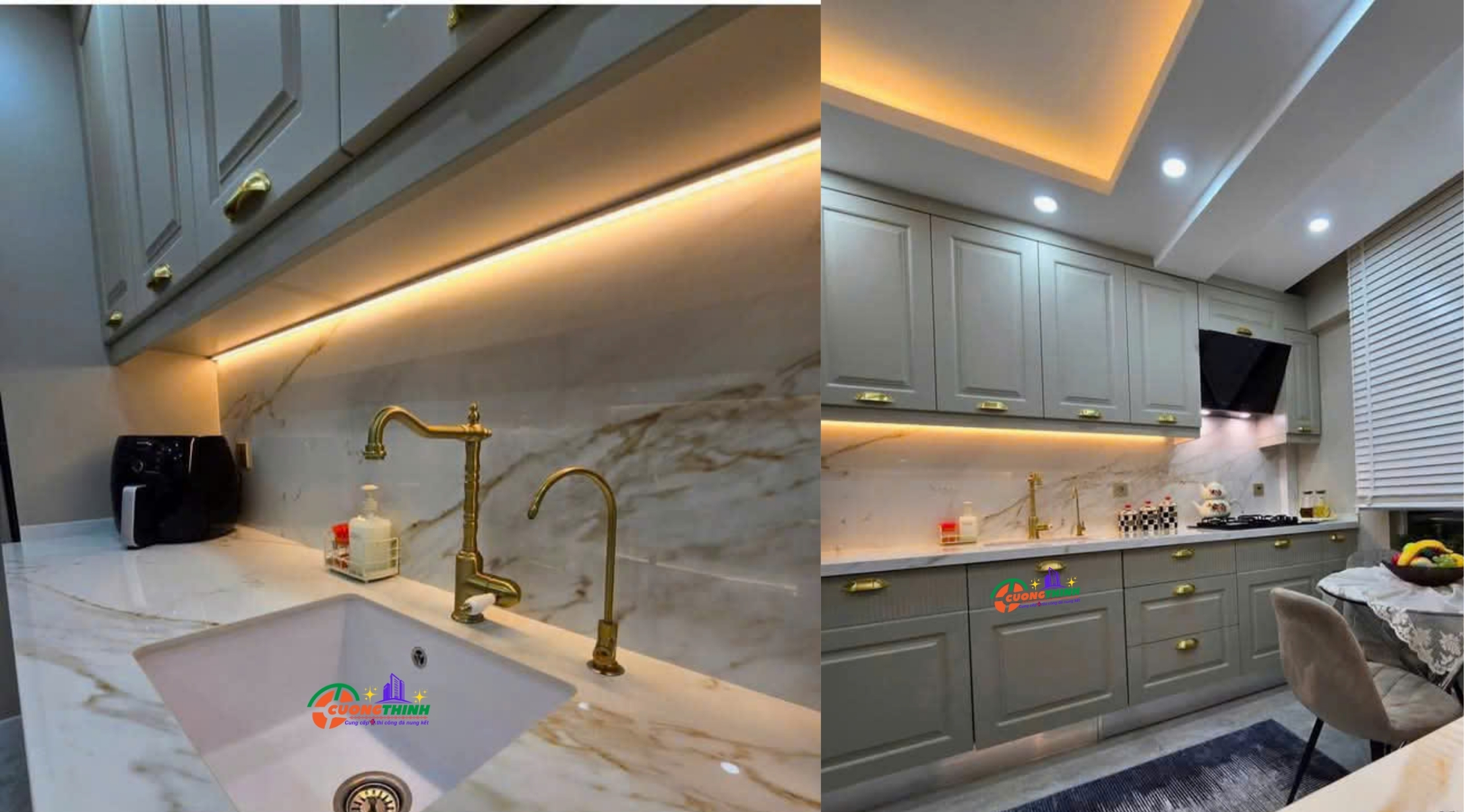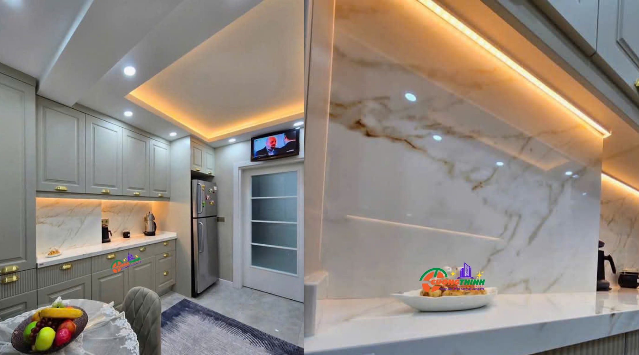 - Bàn bếp và bàn ăn: Độ bền cao, dễ vệ sinh, mang đến sự sang trọng và tiện ích.