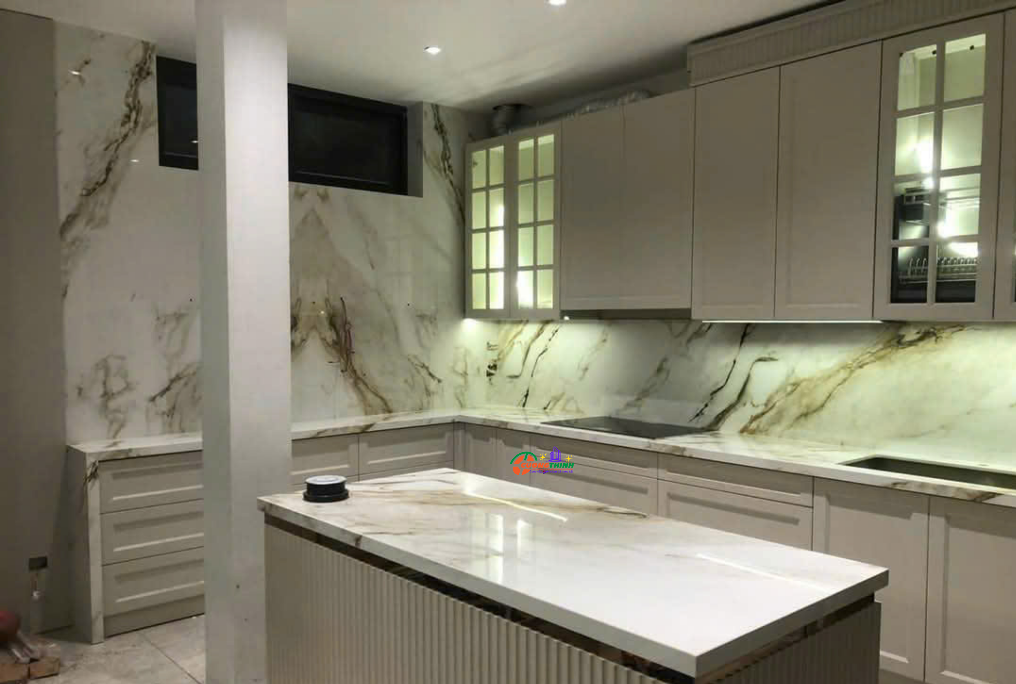 - Bàn bếp và bàn ăn: Độ bền cao, dễ vệ sinh, mang đến sự sang trọng và tiện ích.