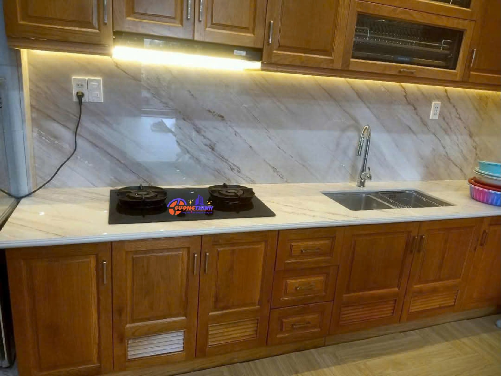 - Bàn bếp và bàn ăn: Độ bền cao, dễ vệ sinh, mang đến sự sang trọng và tiện ích.
