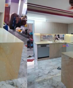 - Thẩm mỹ cao: Vân tự nhiên nổi bật trên nền vàng tạo chiều sâu, làm tăng tính nghệ thuật cho không gian. Phù hợp với phong cách thiết kế tối giản, hiện đại, hoặc cổ điển sang trọng.