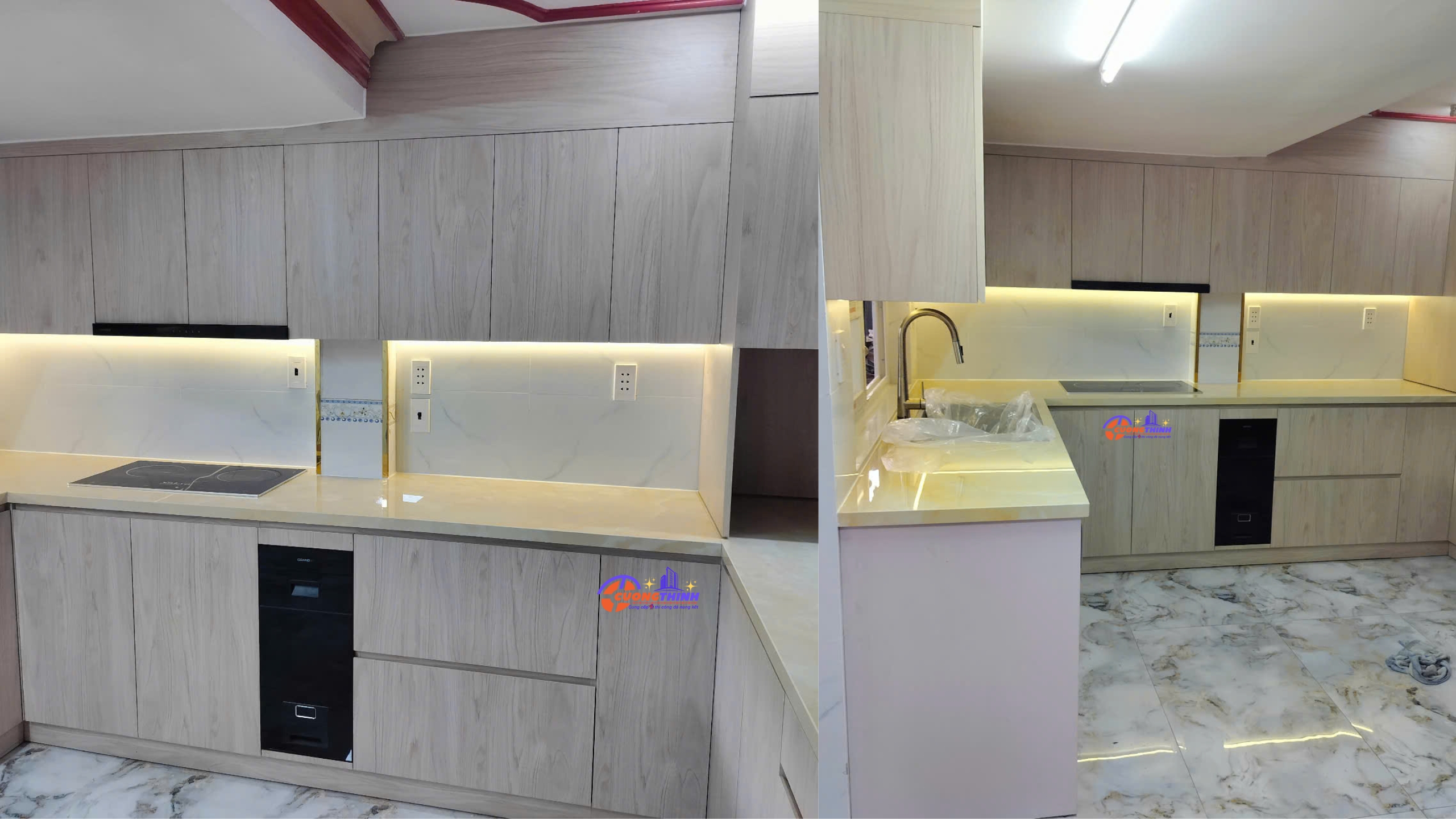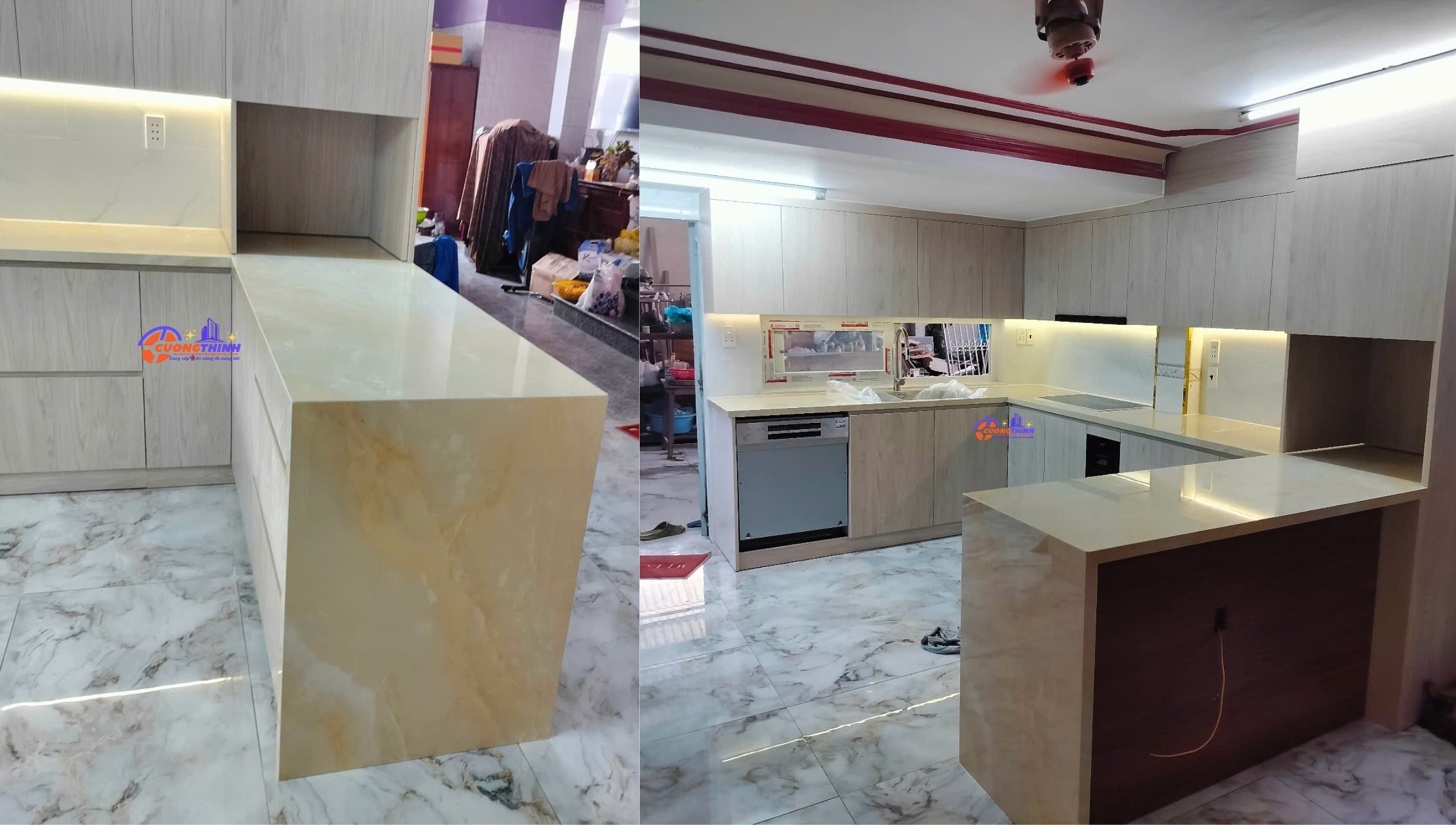 - Bàn bếp và bàn ăn: Độ bền cao, dễ vệ sinh, mang đến sự sang trọng và tiện ích.
