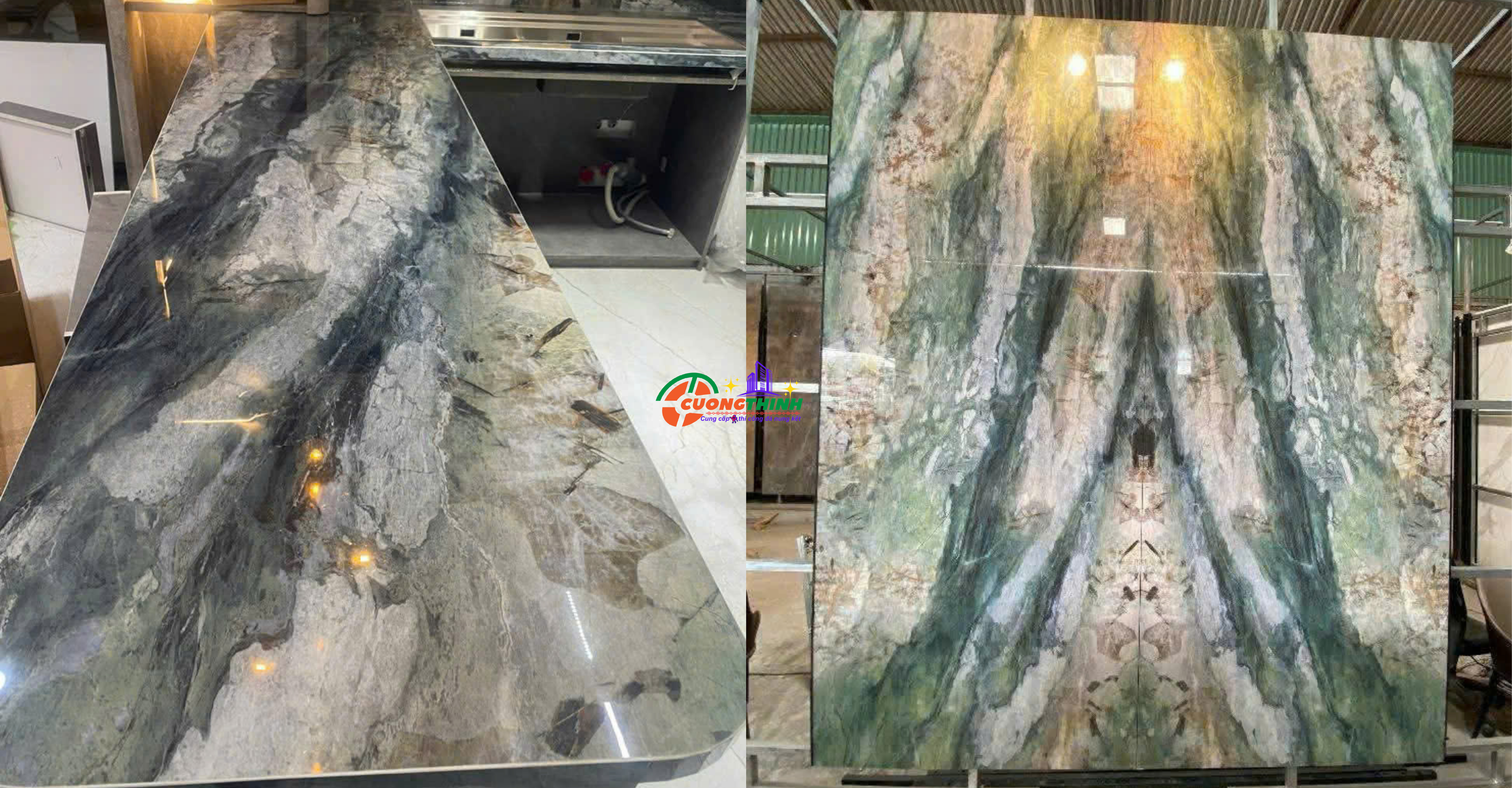 - Thẩm mỹ cao: Vân tự nhiên nổi bật trên nền xanh tạo chiều sâu, làm tăng tính nghệ thuật cho không gian. Phù hợp với phong cách thiết kế tối giản, hiện đại, hoặc cổ điển sang trọng.