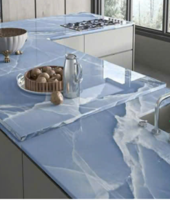 - Thẩm mỹ cao: Vân tự nhiên nổi bật trên nền xanh tạo chiều sâu, làm tăng tính nghệ thuật cho không gian. Phù hợp với phong cách thiết kế tối giản, hiện đại, hoặc cổ điển sang trọng.