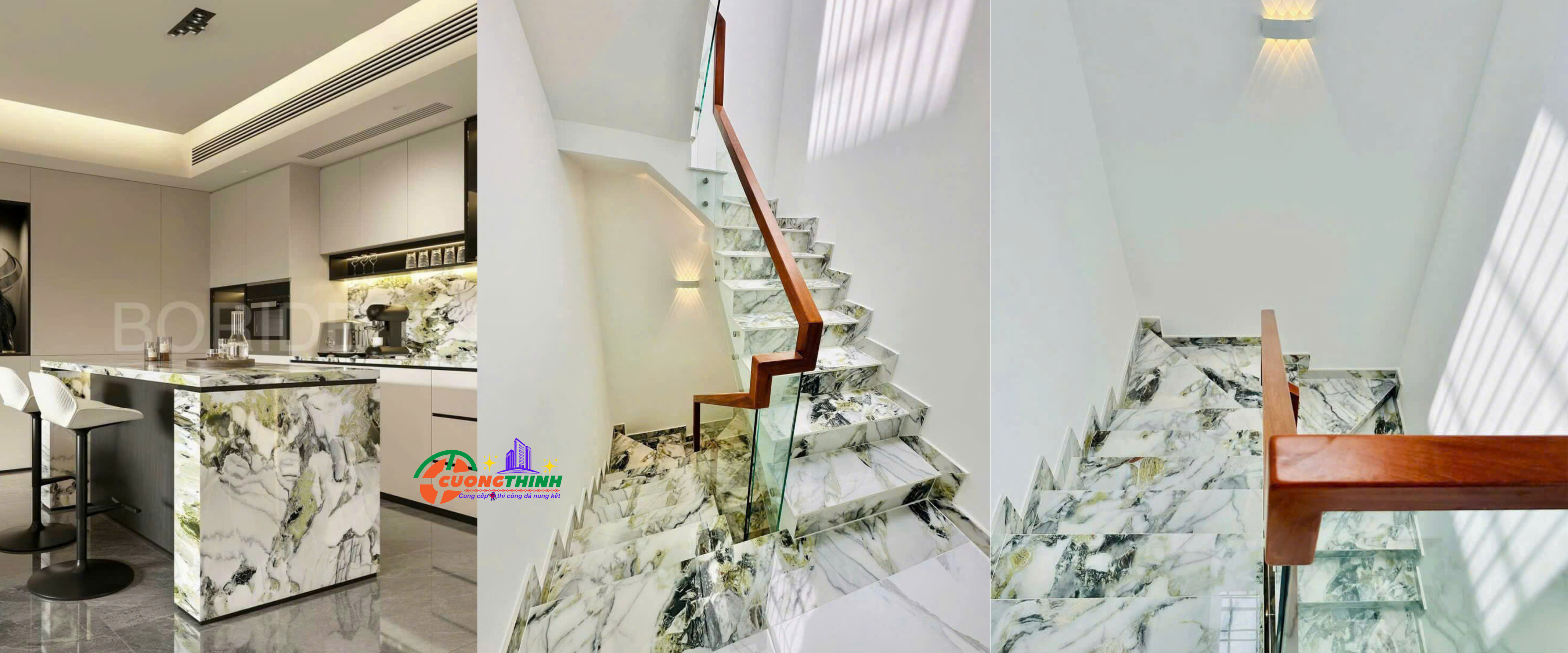- Thẩm mỹ cao: Vân tự nhiên nổi bật trên nền xanh tạo chiều sâu, làm tăng tính nghệ thuật cho không gian. Phù hợp với phong cách thiết kế tối giản, hiện đại, hoặc cổ điển sang trọng.