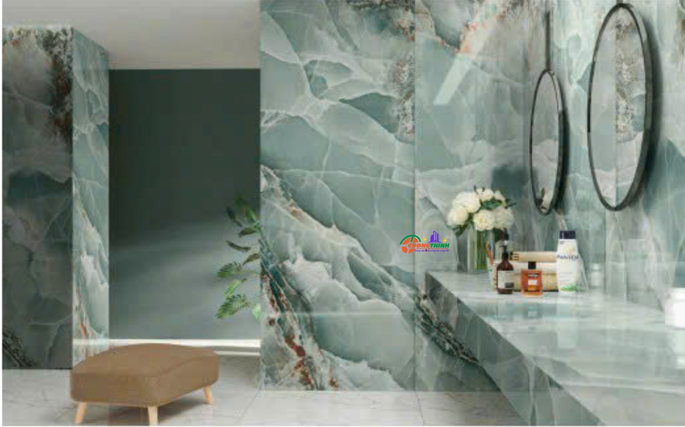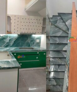 - Thẩm mỹ cao: Vân tự nhiên nổi bật trên nền xanh tạo chiều sâu, làm tăng tính nghệ thuật cho không gian. Phù hợp với phong cách thiết kế tối giản, hiện đại, hoặc cổ điển sang trọng.